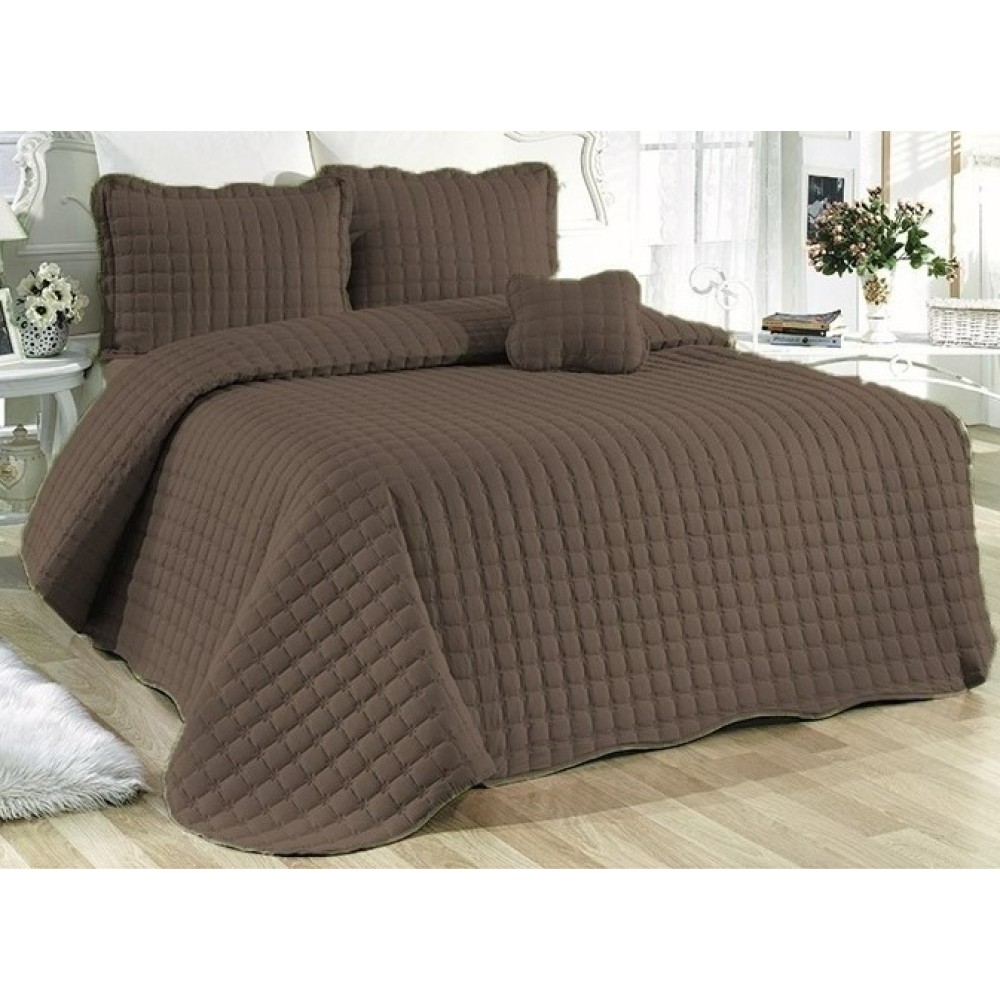 Cuvertura Brodata pat dublu cu 3 fete de perna, maro inchis, Casa Sabry, cod produs: SBR-CVM-14