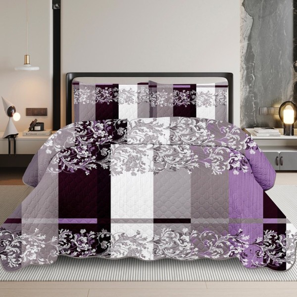 Cuvertura Matlasata, 220x240cm, cu 2 Fete + 2 fete de perna 50x70cm, Mov/Gri, cod produs: TRP-CVS-08