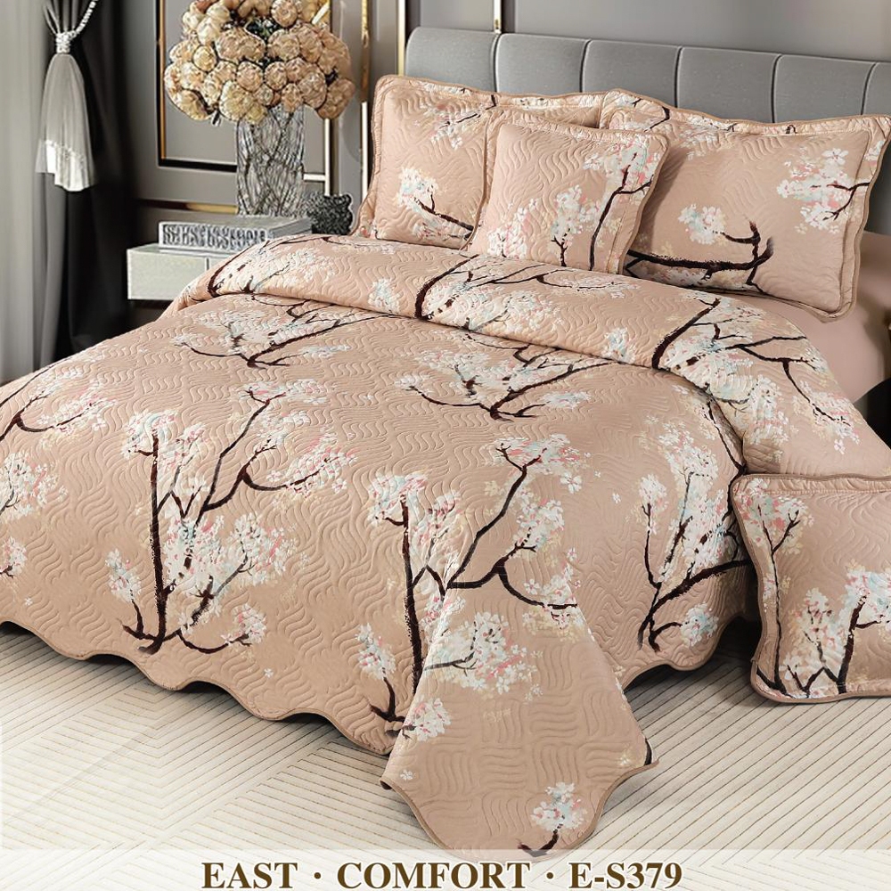 Cuvertura matlasata 230x250cm si 4 fete de perna, Bumbac, Bej, crengute cu flori, East Romania, cod produs: EST-E-S379