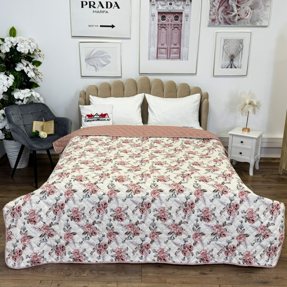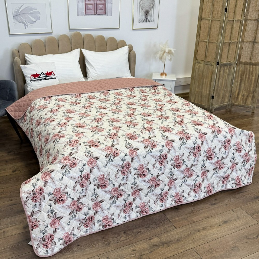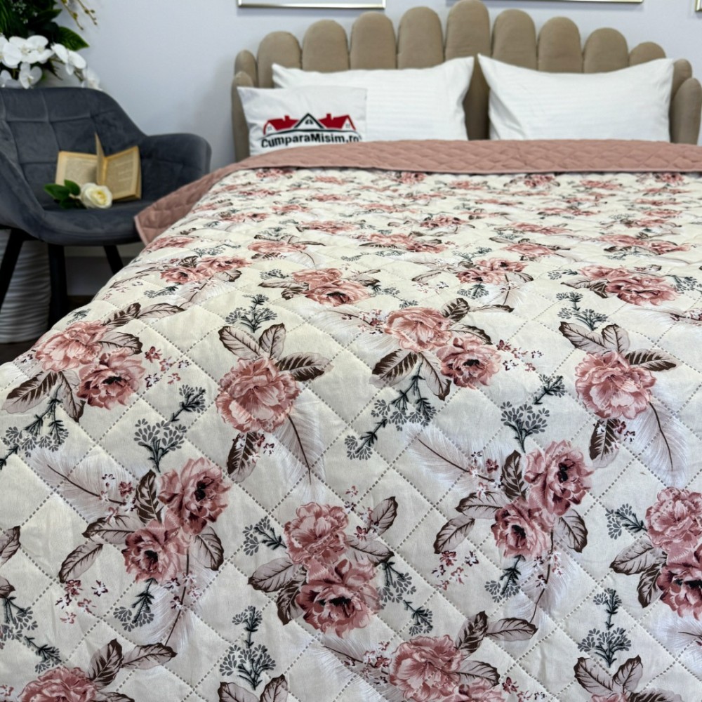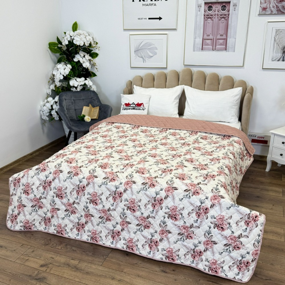 Cuvertura matlasata, confectionata din microfibra soft touch, cu umplutura din vatelina siliconica antialergenica.