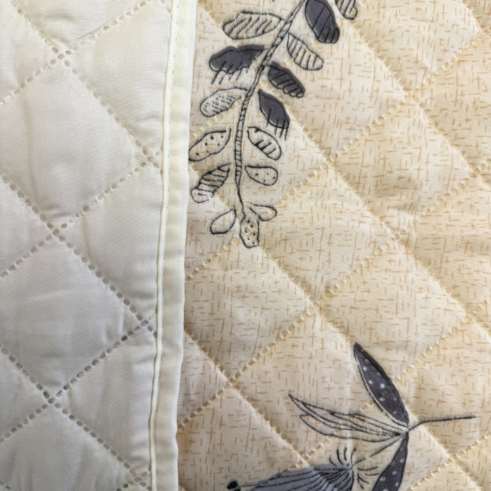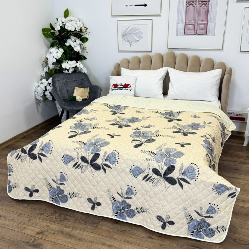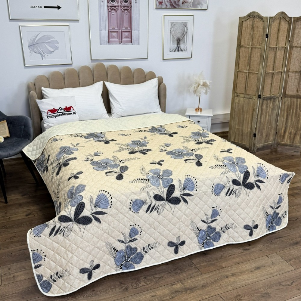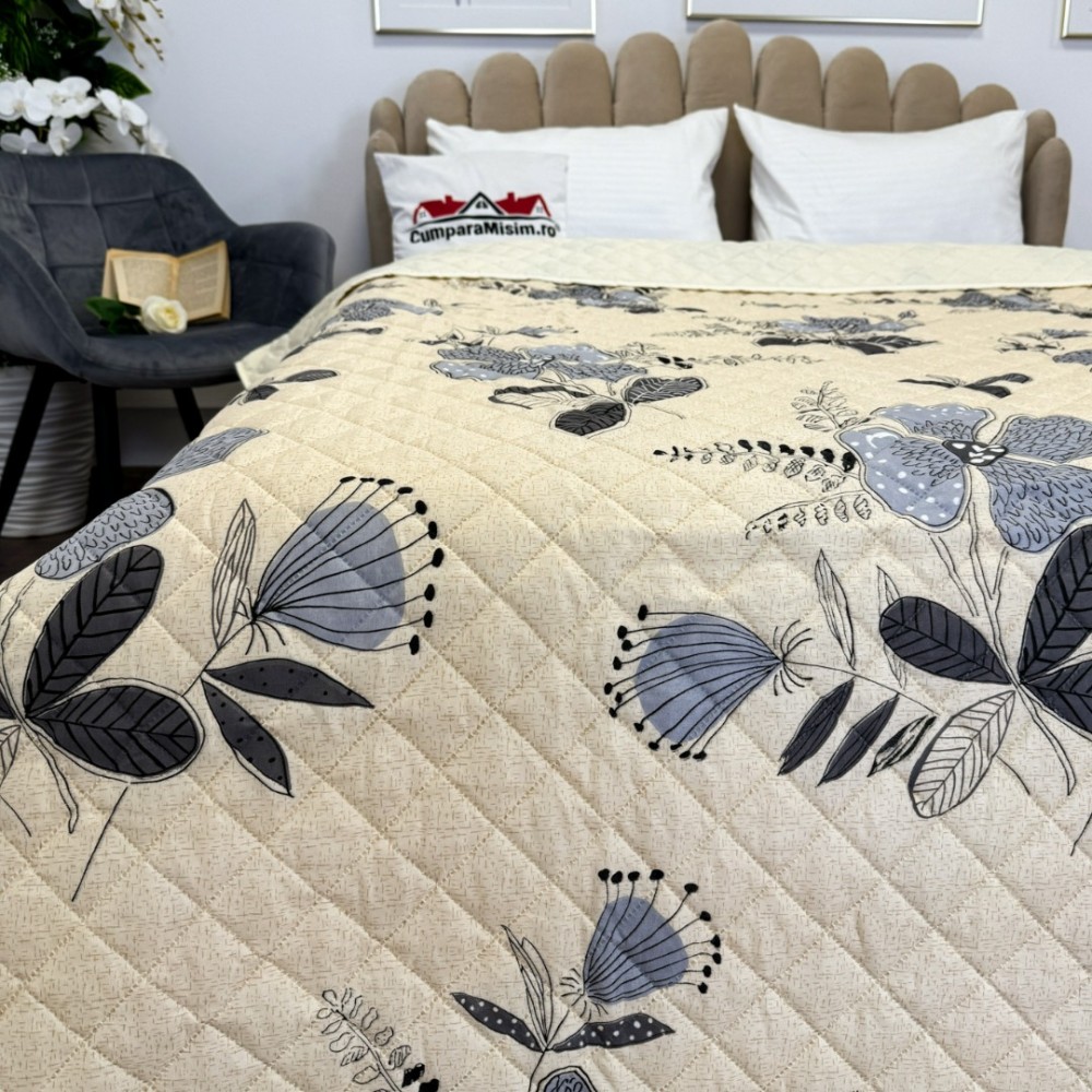 Cuvertura matlasata, confectionata din microfibra soft touch, cu umplutura din vatelina siliconica antialergenica.