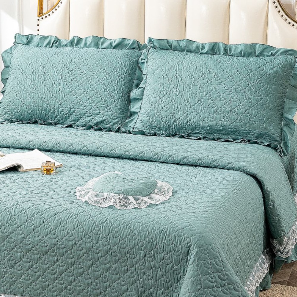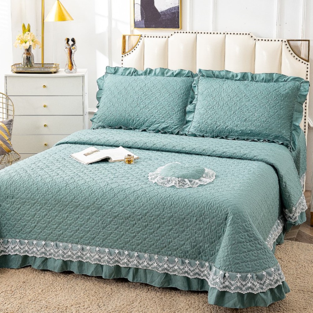 Cuvertură matlasată din bumbac finet cu volănașe și dantelă Chantilly – Eleganță și confort pentru dormitorul tău