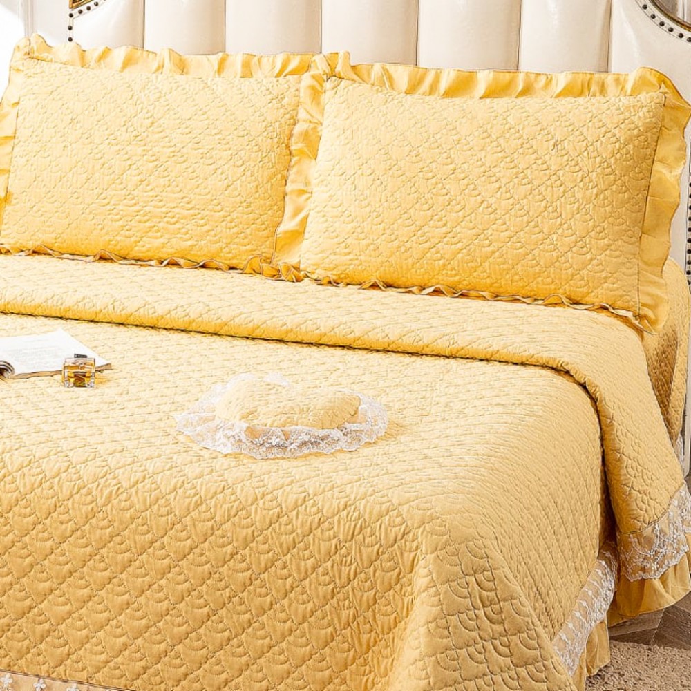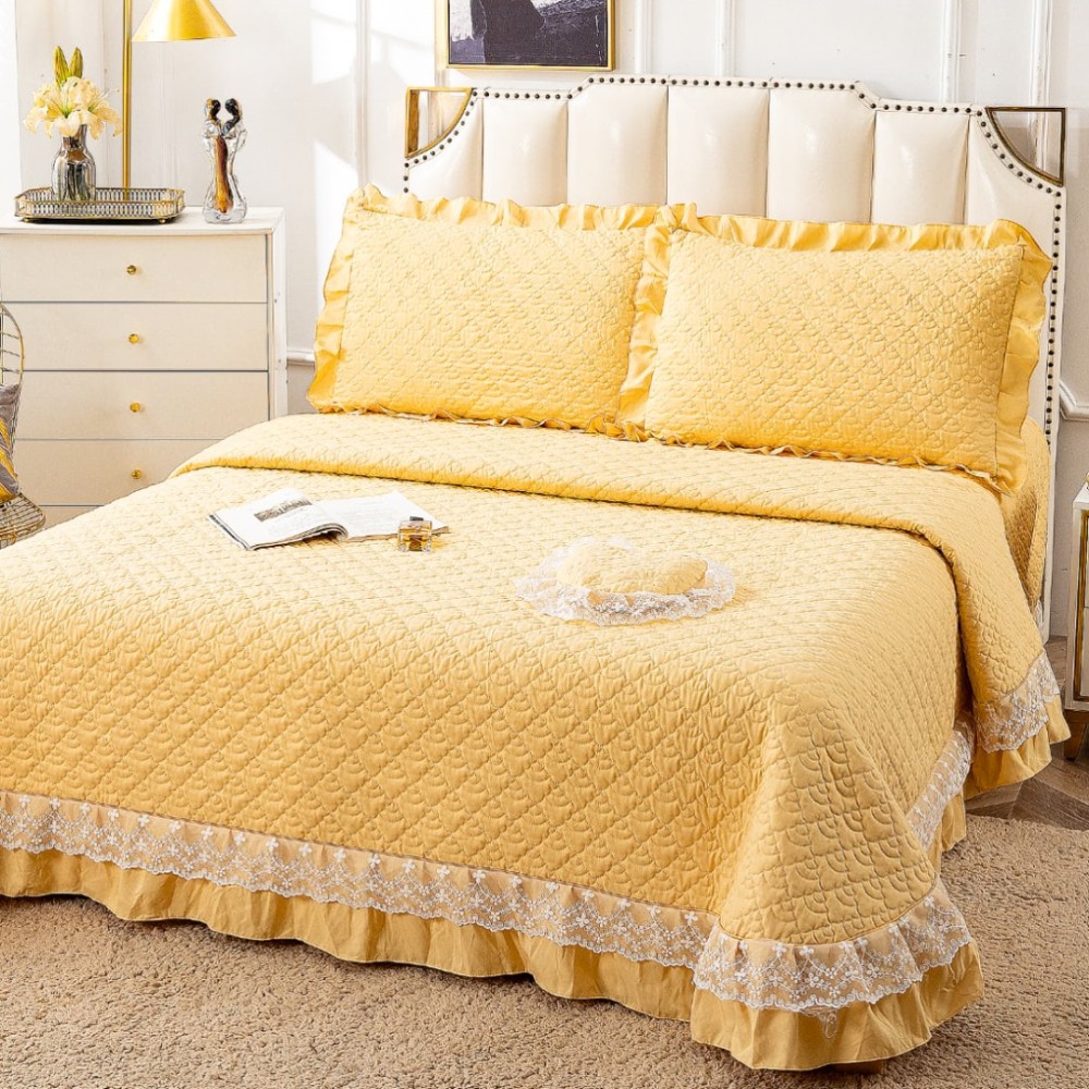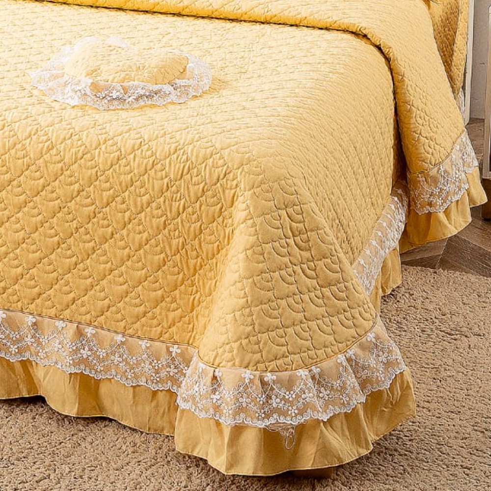 Cuvertură matlasată din bumbac finet cu volănașe și dantelă Chantilly – Eleganță și confort pentru dormitorul tău