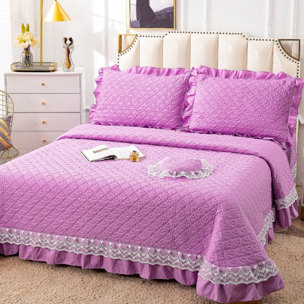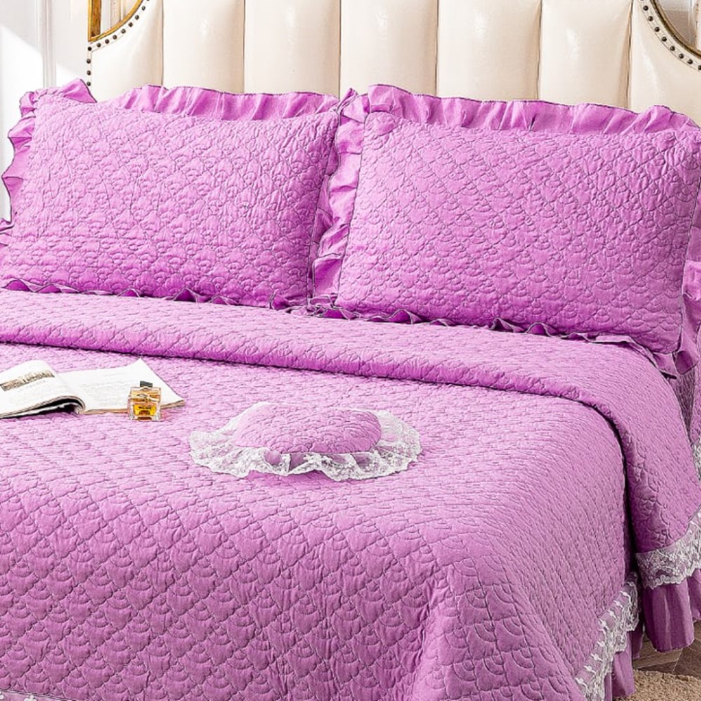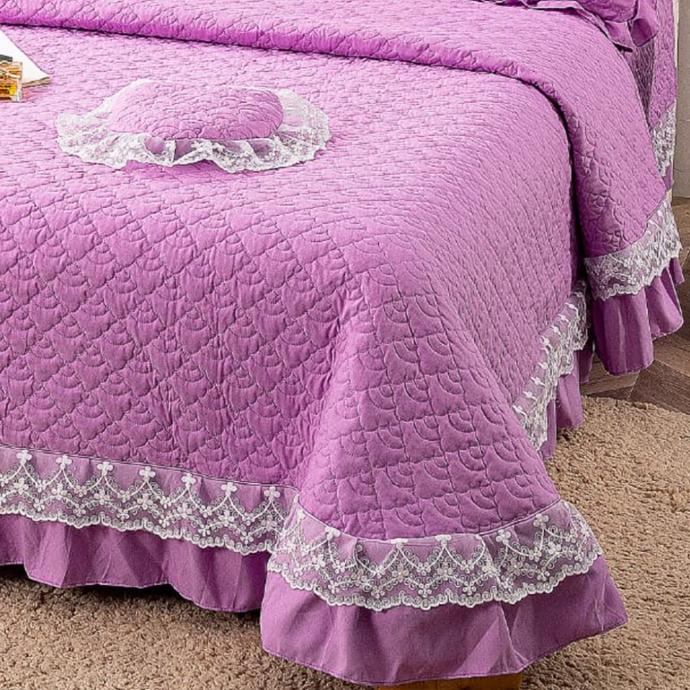 Cuvertură matlasată din bumbac finet cu volănașe și dantelă Chantilly – Eleganță și confort pentru dormitorul tău