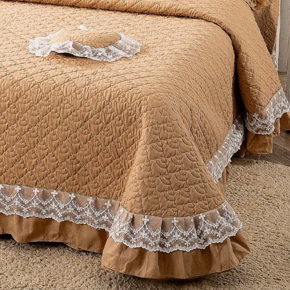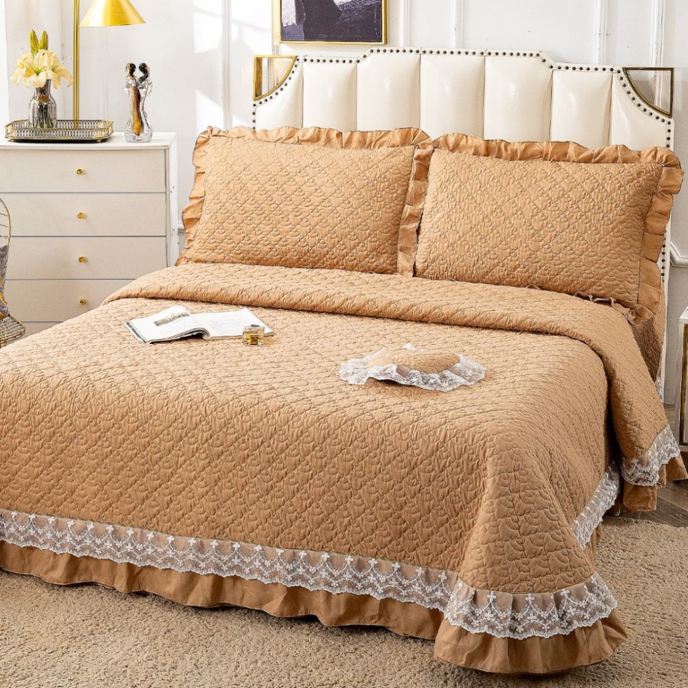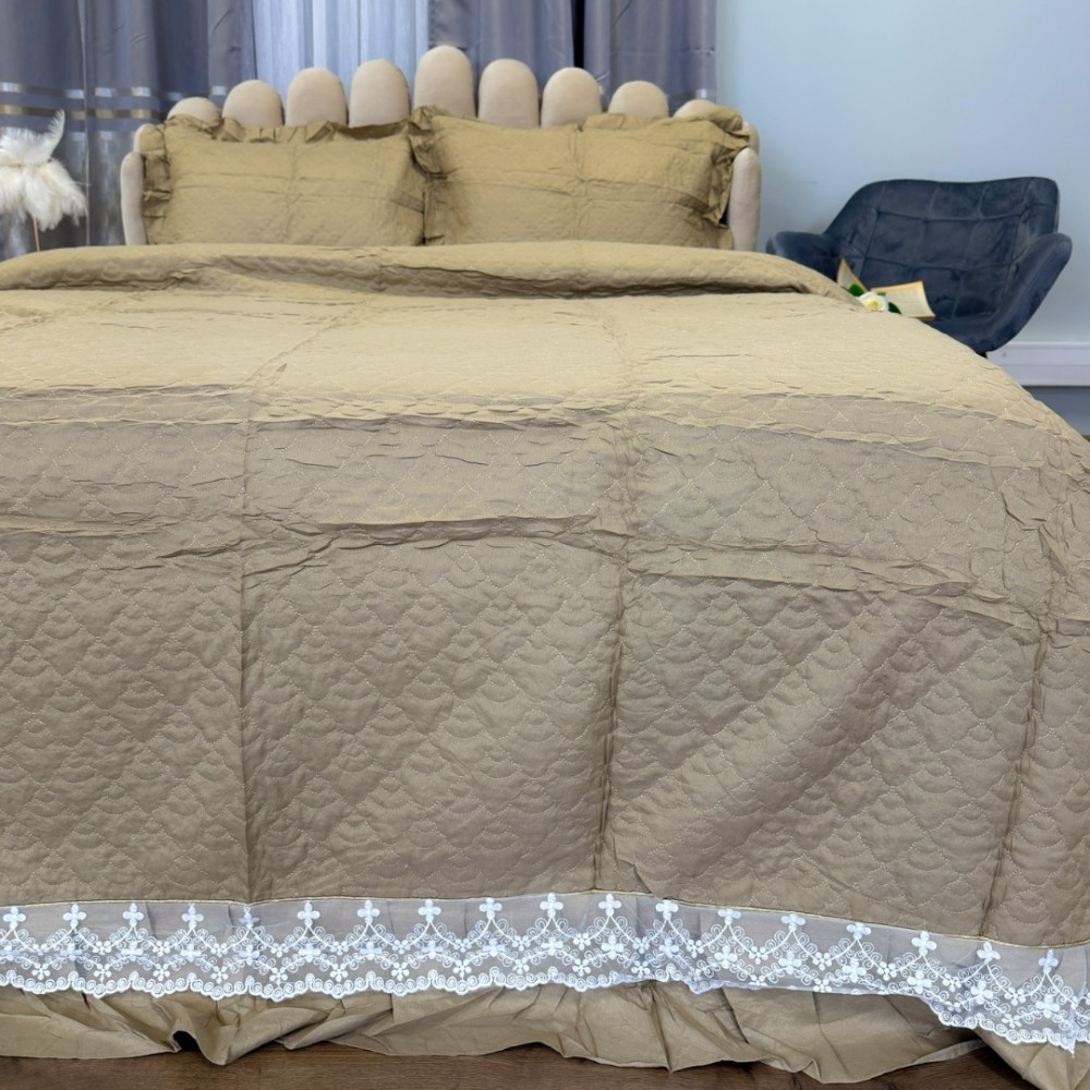 Cuvertură matlasată din bumbac finet cu volănașe și dantelă Chantilly – Eleganță și confort pentru dormitorul tău