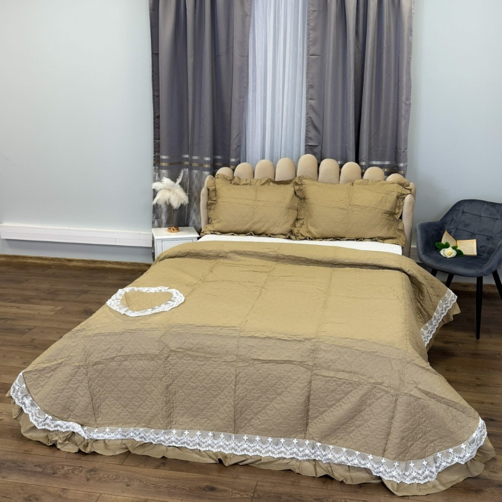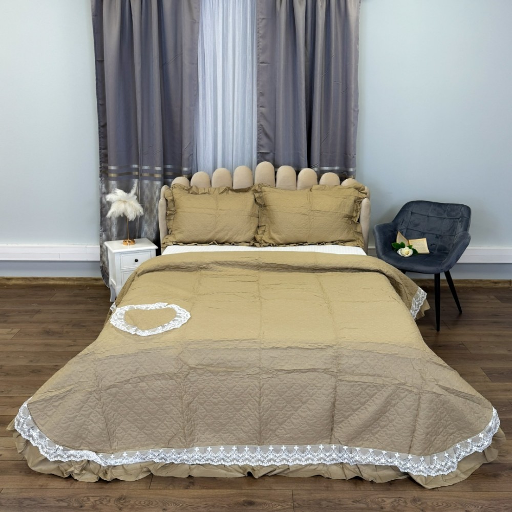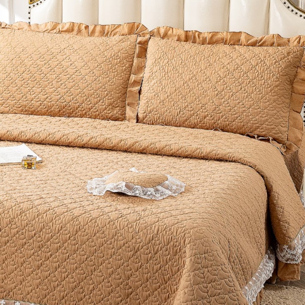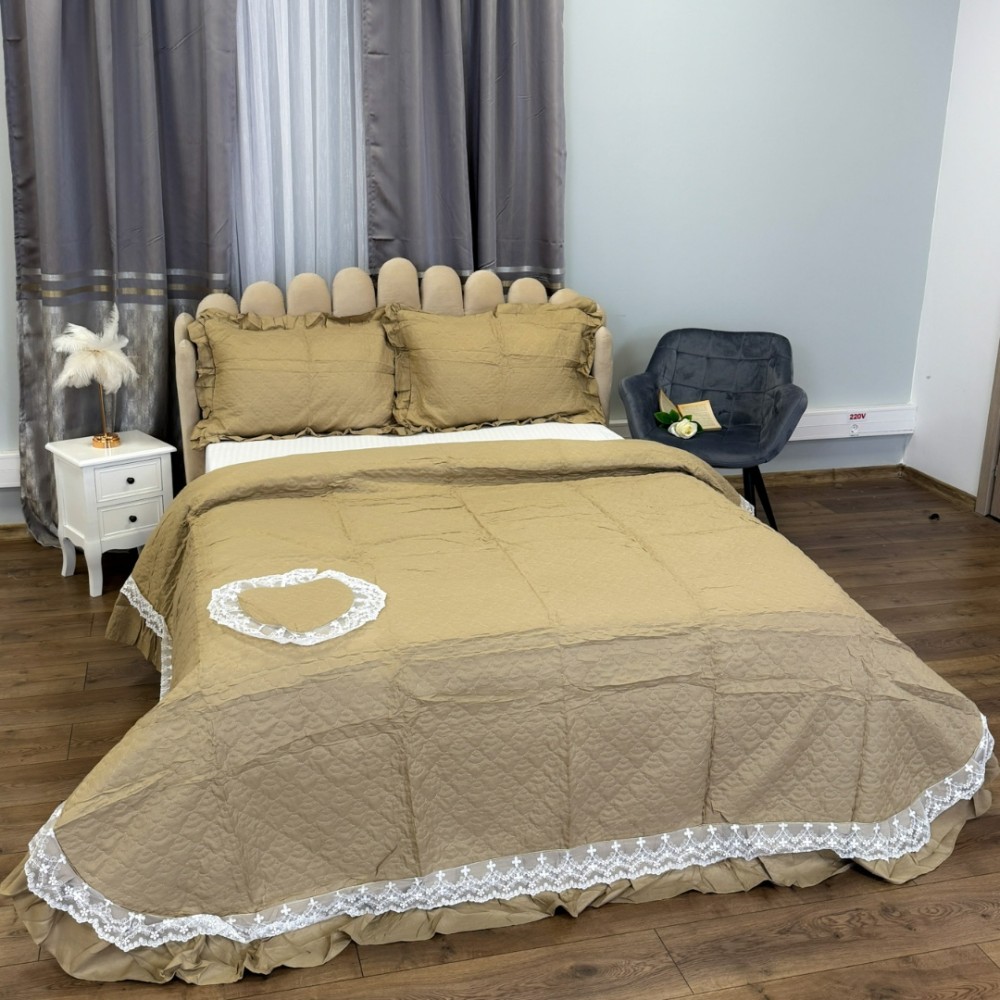 Cuvertură matlasată din bumbac finet cu volănașe și dantelă Chantilly – Eleganță și confort pentru dormitorul tău