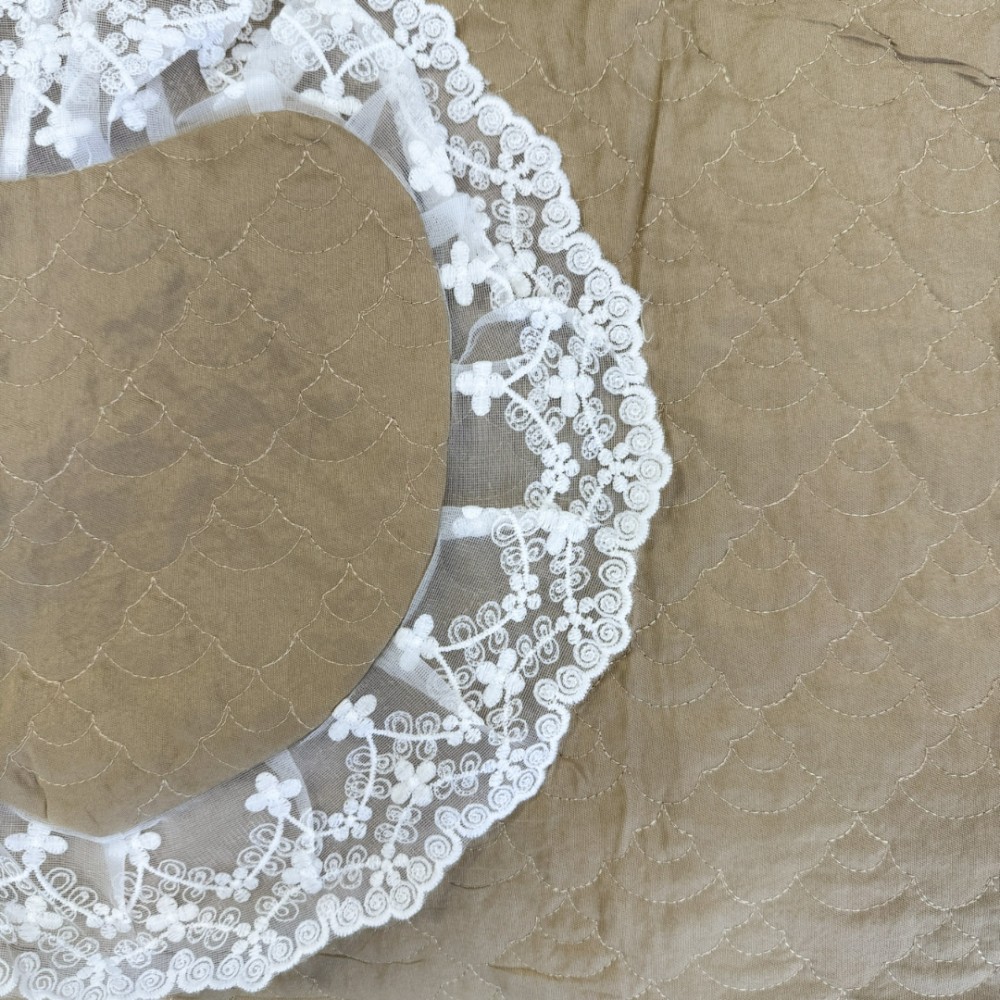 Accesorii: Bordură din dantelă Chantilly albă + volănașe plisate pentru un efect sofisticat
