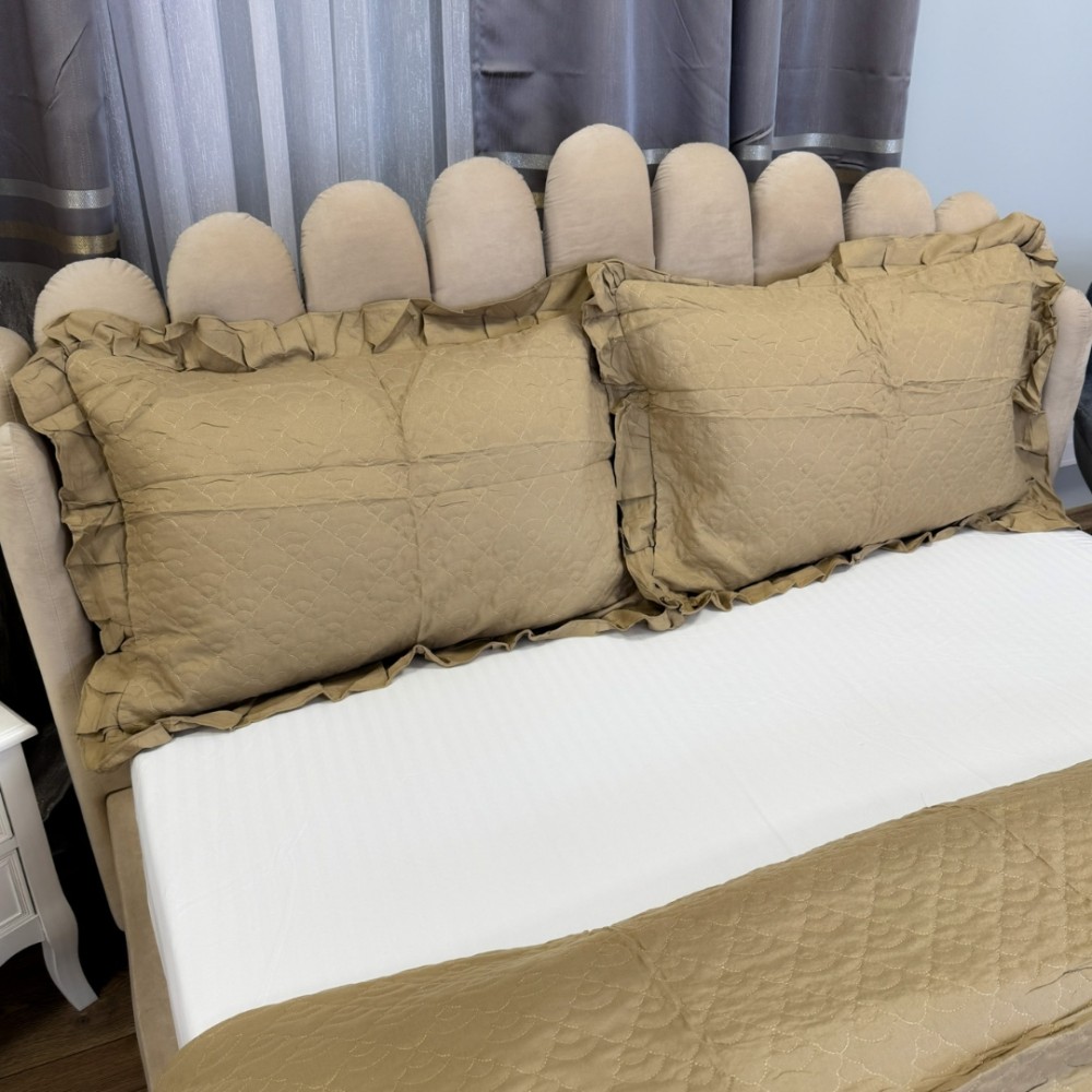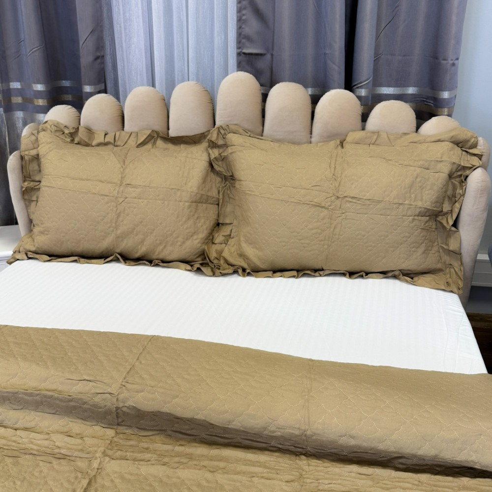Dimensiuni generoase: Cuvertura acoperă patul complet, oferind un aspect uniform și sofisticat.