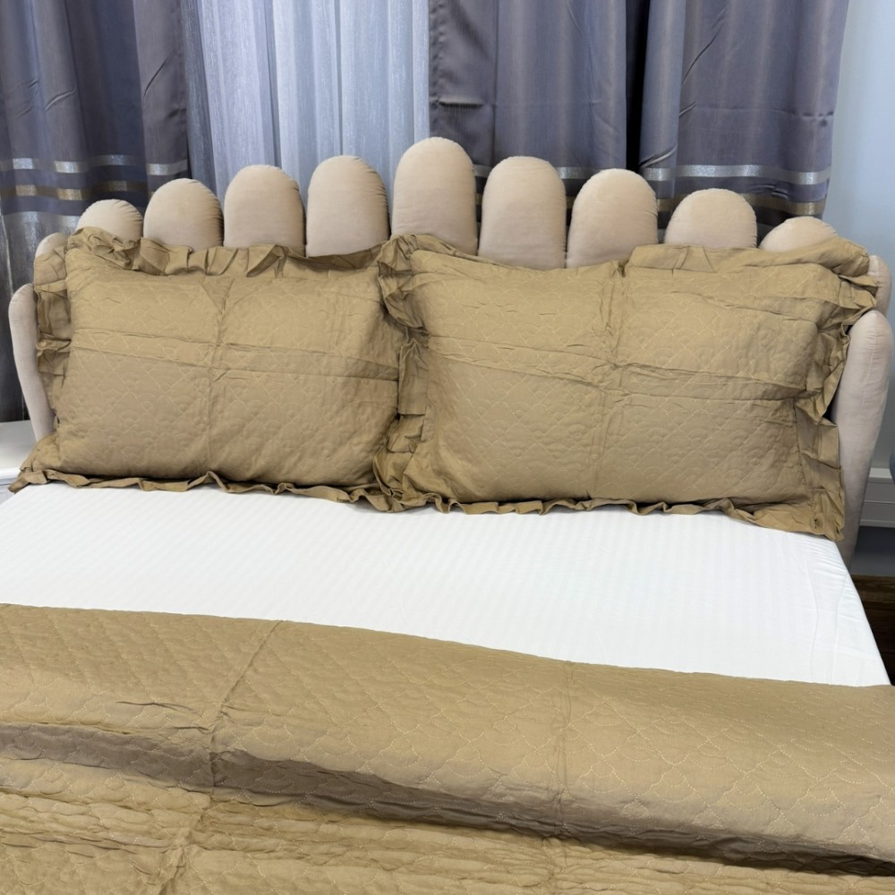 Transformă-ți dormitorul într-un spațiu de lux și rafinament cu această cuvertură matlasată din bumbac finet. Cu un design sofisticat, volănașe delicate și bordură elegantă din dantelă Chantilly, acest set îmbină estetica premium cu funcționalitatea practică.