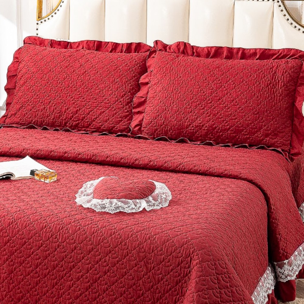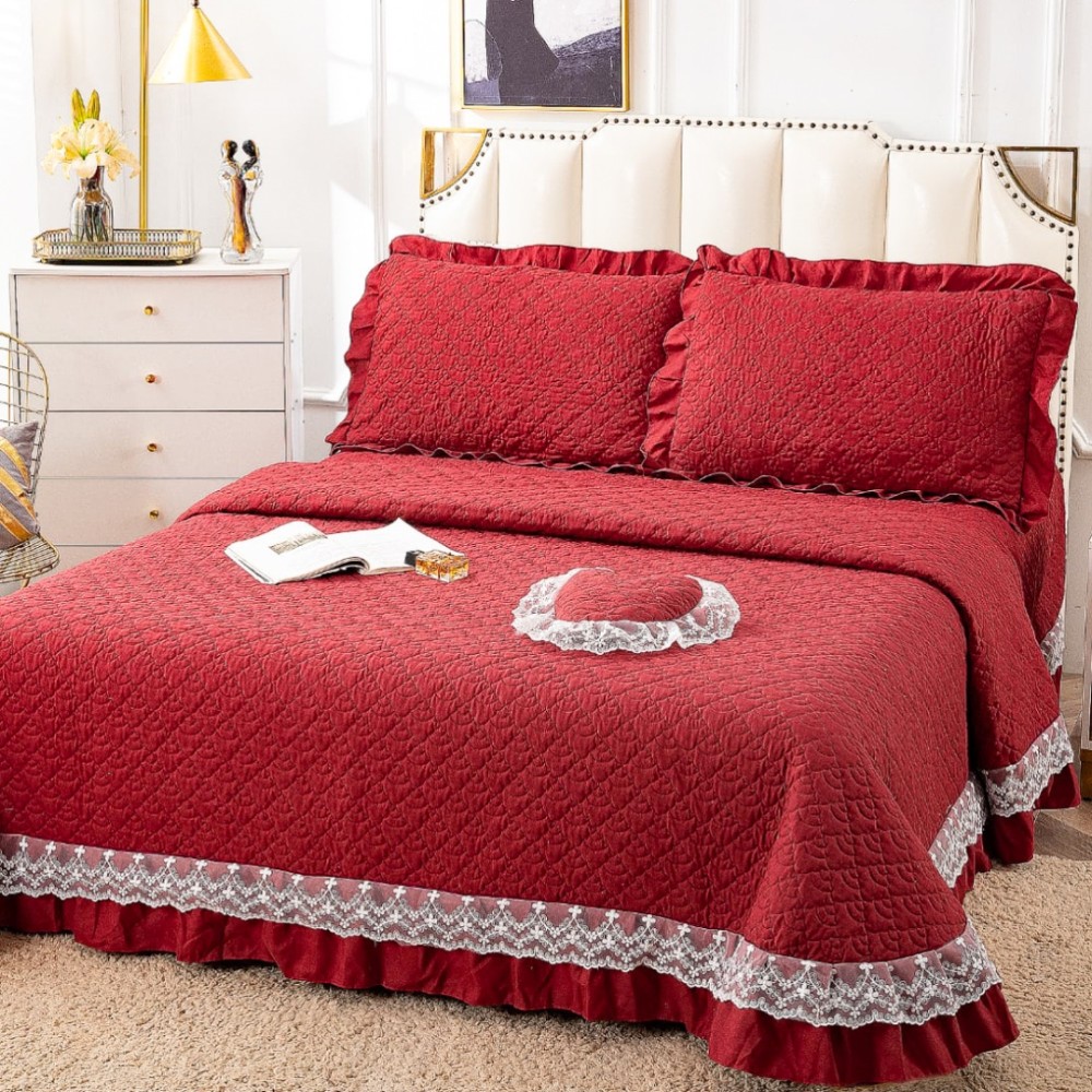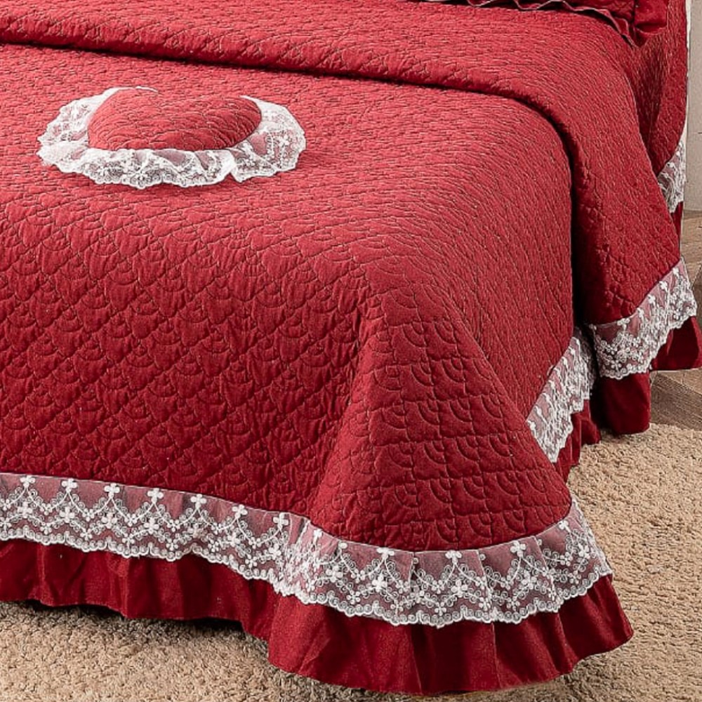 Cuvertură matlasată din bumbac finet cu volănașe și dantelă Chantilly – Eleganță și confort pentru dormitorul tău