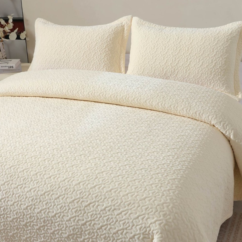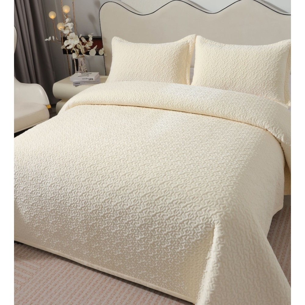 Cuvertura pat dublu, 3 piese, Catifea Luxury Matlasata, 230x240cm, Crem, cod produs: CSA-CCU-05