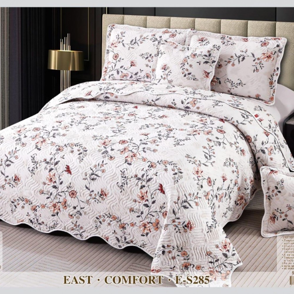Cuvertura matlasata 230x250cm si 4 fete de perna, Bumbac, Crem, flori, East Romania, cod produs: EST-E-S285