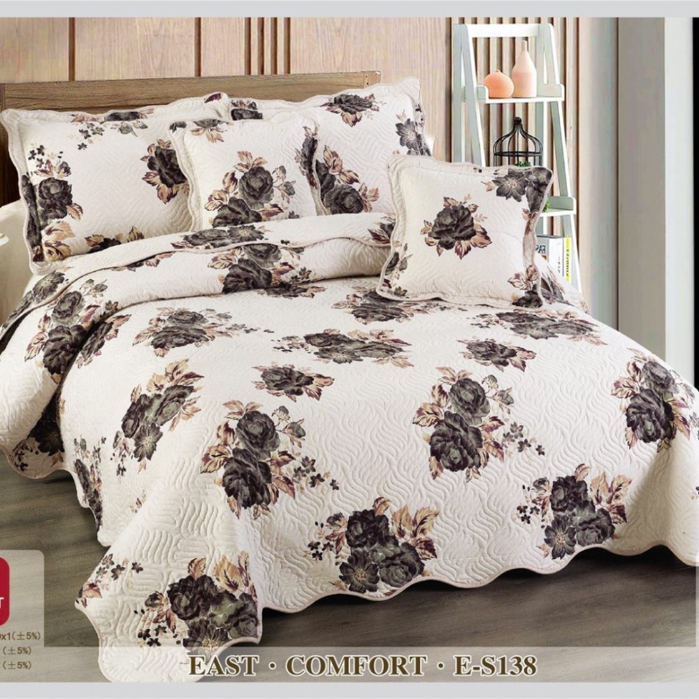 Cuvertura matlasata 230x250cm si 4 fete de perna, Bumbac, Crem, Gri, flori, East Romania, cod produs: EST-E-S138