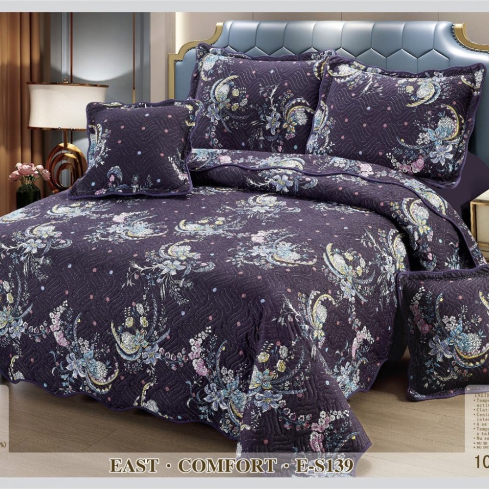 Cuvertura matlasata 230x250cm si 4 fete de perna, Bumbac, Mov, flori, East Romania, cod produs: EST-E-S139