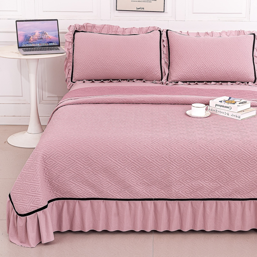 Cuvertura Pat Dublu, Eleganta, Catifea Matlasata, 230x250 cm, 2 fete de perna 52x72cm, Roz Prafuit INS-CVK17, Insula Lenjeriei