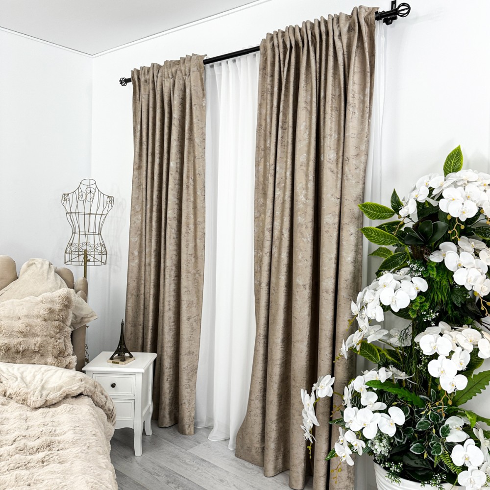 Folosim materiale de înaltă calitate, cu un aspect satinat luxos, care adaugă un plus de strălucire și rafinament oricărei încăperi. Textura fină și moale a acestor draperii încântă simțurile și adaugă o notă de eleganță și sofisticare în designul interior.