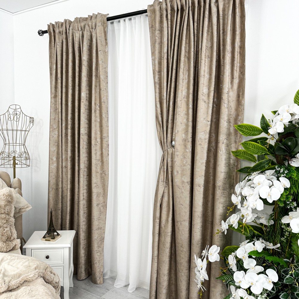 Aceste draperii nu sunt doar un element de decor, ci și o declarație a bunului gust și a stilului sofisticat al proprietarului. Cu o astfel de alegere, încăperea devine cu adevărat remarcabilă, transformând orice spațiu într-un sanctuar al luxului și al eleganței.