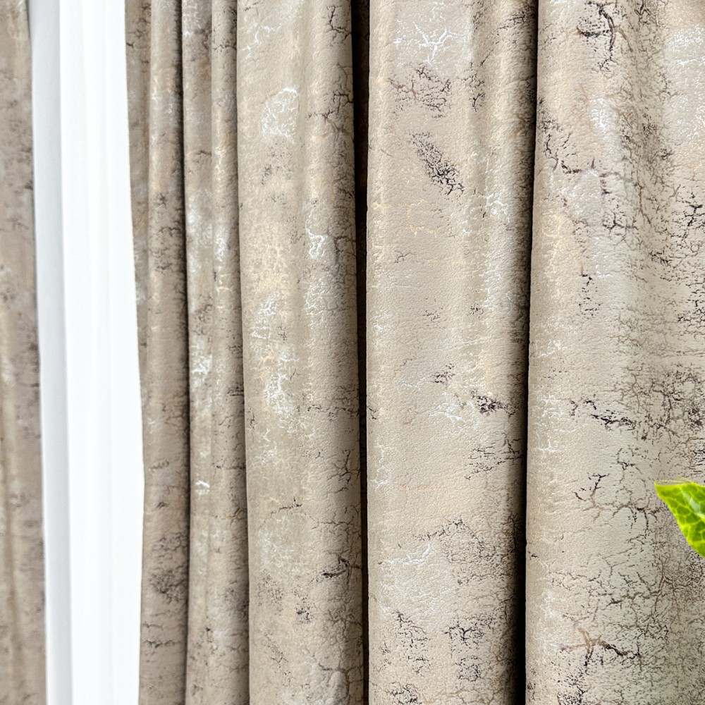 Set 2 Draperii Catifea cu insertii metalizate, Bej inchis - V3, 140cm latime x 260cm inaltime, cu tiv lat pt bara, CumparaMisim, cod produs: CSR-DR9