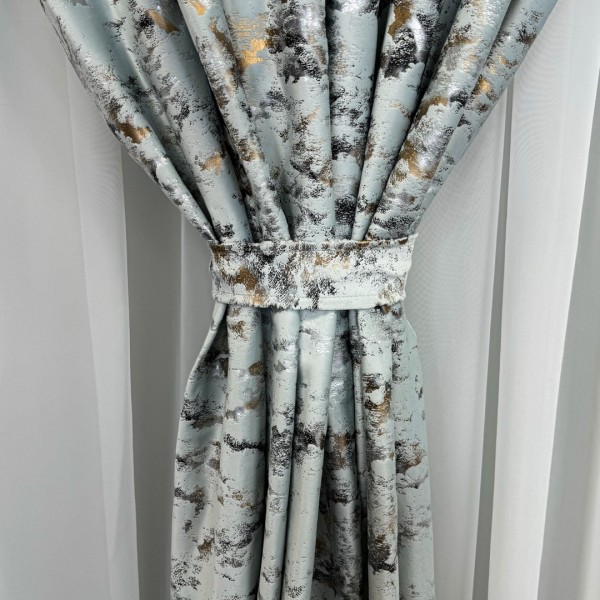 Draperia Nikko din catifea cu inserții metalizate aurii și argintii este o alegere sofisticată pentru cei care doresc să adauge un plus de rafinament și exclusivitate decorului interior. Contrastul dintre textura moale a catifelei și strălucirea subtilă a inserțiilor metalizate creează un efect vizual spectaculos, transformând orice încăpere într-un spațiu elegant și sofisticat.