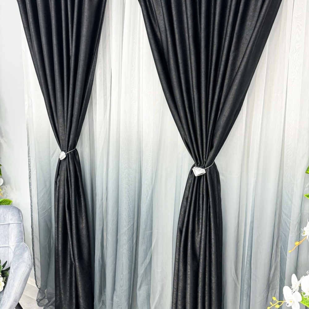 Folosim materiale de înaltă calitate, cu un aspect satinat luxos, care adaugă un plus de strălucire și rafinament oricărei încăperi. Textura fină și moale a acestor draperii încântă simțurile și adaugă o notă de eleganță și sofisticare în designul interior.