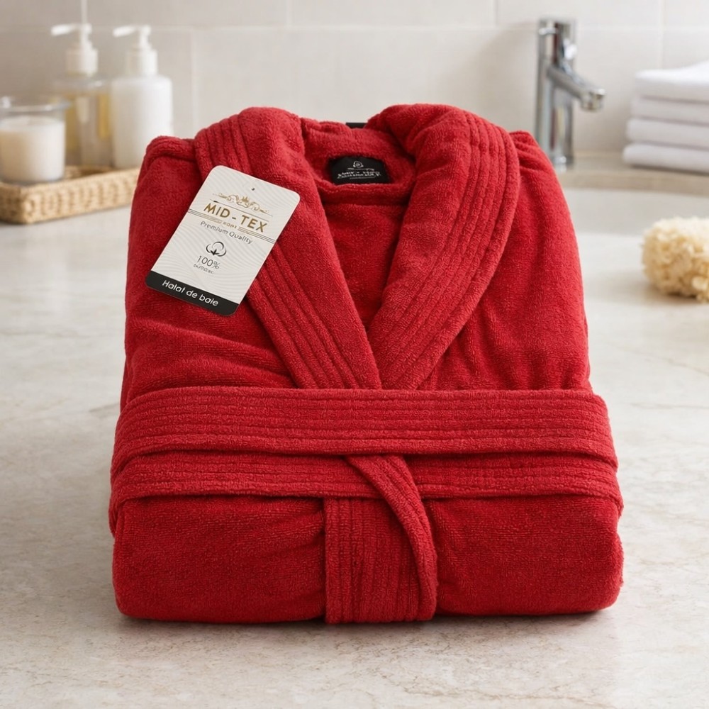 Halat de Baie Unisex din bumbac 100%, 500g – moale, absorbant și confortabil, Rosu, Masura S/M, Mid-Tex, cod produs: MDT-HB-01