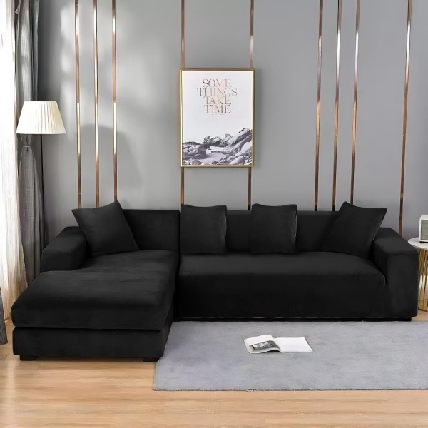 Husa elastica universala pentru coltar, Catifea Negru, Johny Home Pucioasa, cod produs: SPR-HD-05