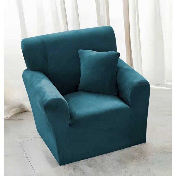 Husa elastica universala, pentru fotoliu cu brate, Catifea Turcuaz, Johny Home Pucioasa, cod produs: SPR-HA-01