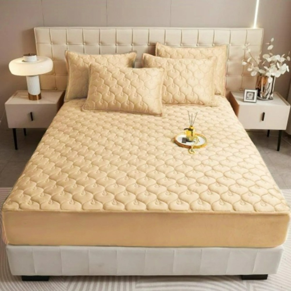 Husã matlasatã tip topper din catifea, 140x200cm + 2 fete de perna 50x70cm, bej inchis, Alti producatori, cod produs: YAT34