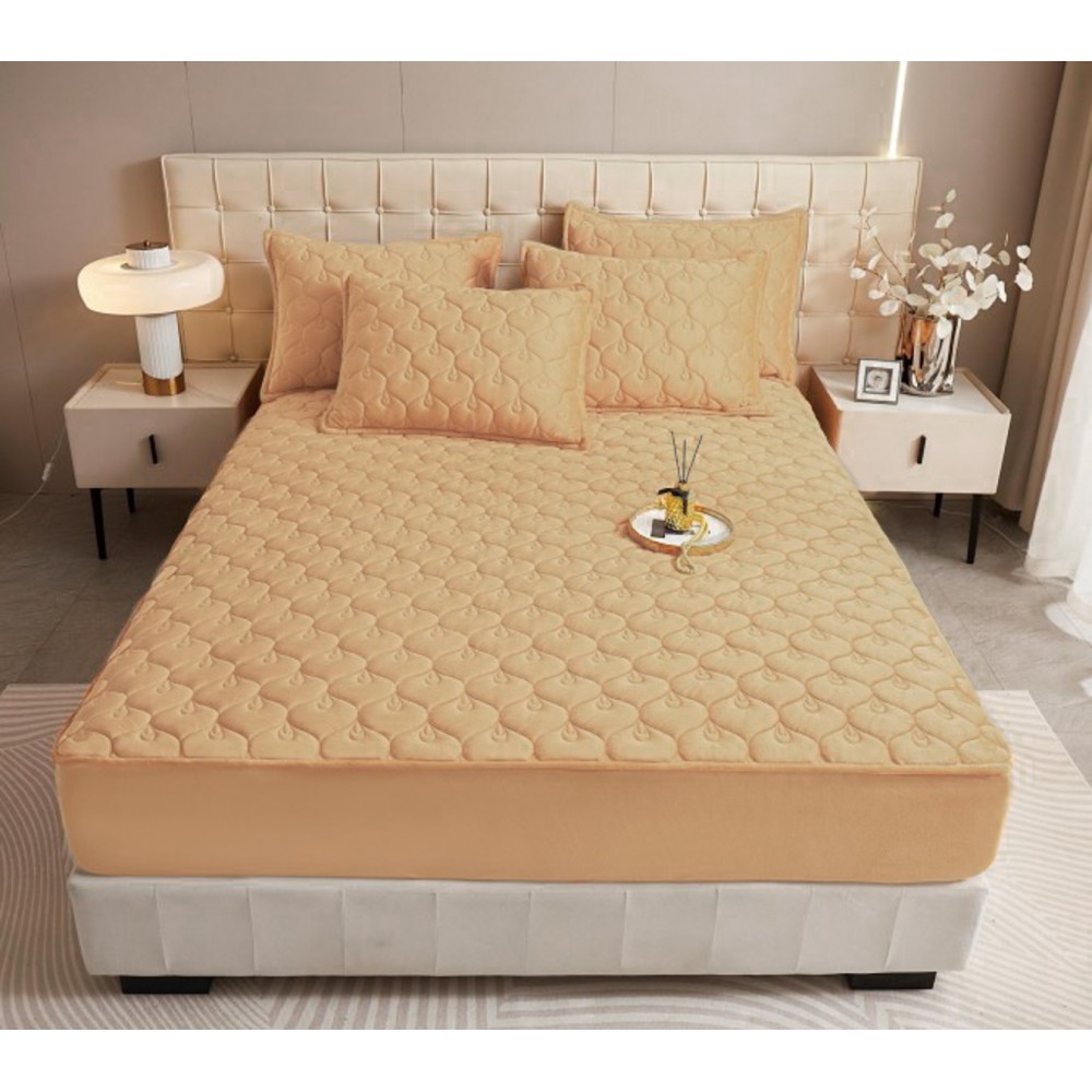Husã matlasatã tip topper din catifea, 140x200cm + 2 fete de perna 50x70cm, camel, Alti producatori, cod produs: YAT12