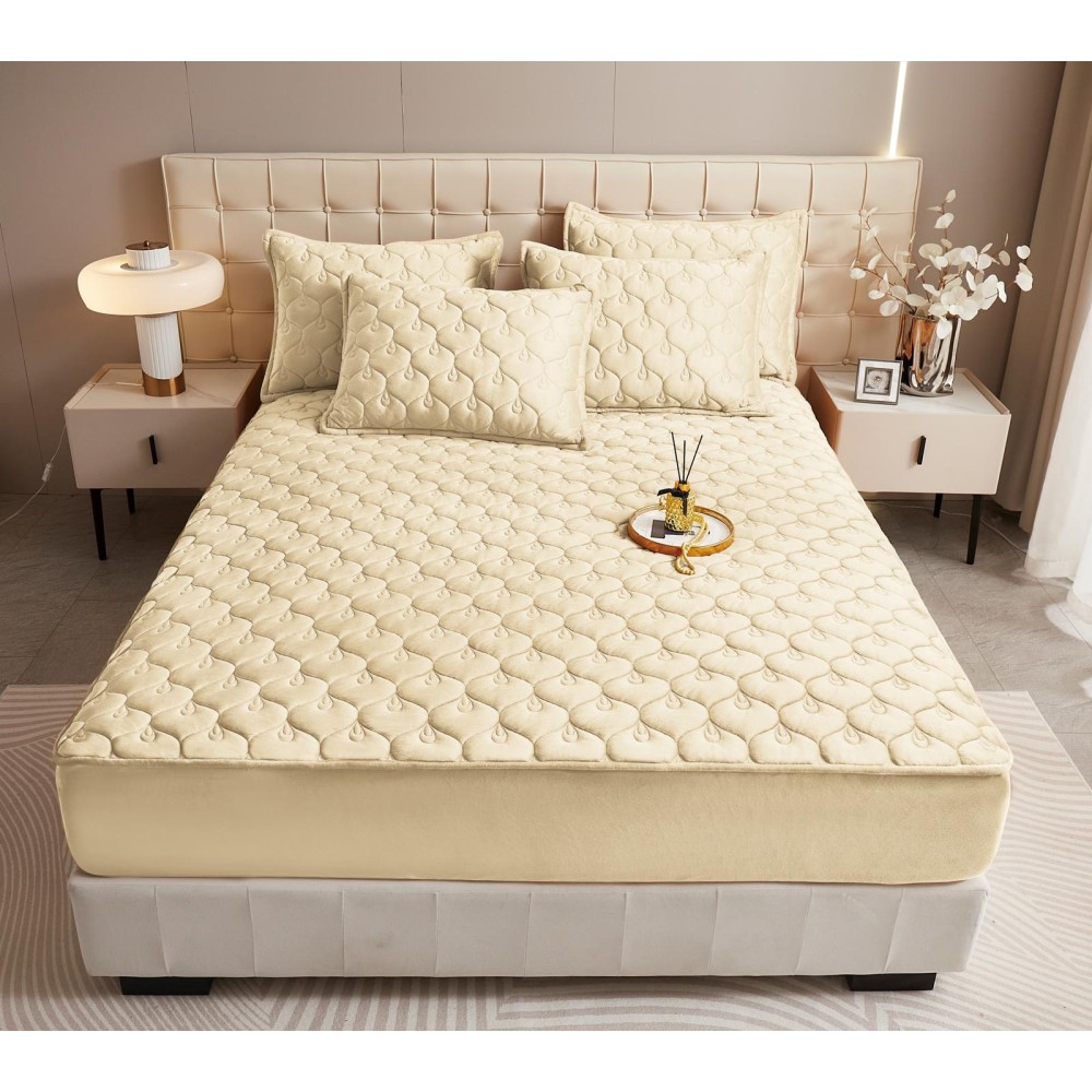Husã matlasatã tip topper din catifea, 140x200cm + 2 fete de perna 50x70cm, crem, Alti producatori, cod produs: YAT11