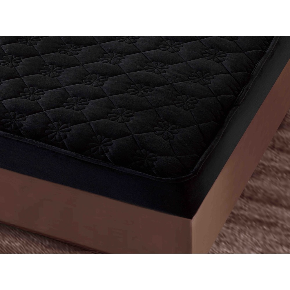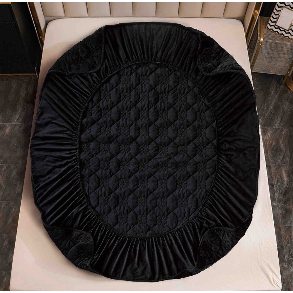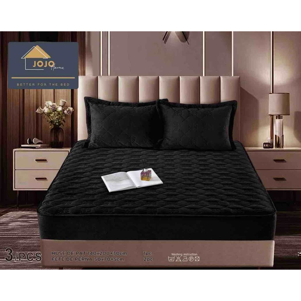 Husã matlasatã tip topper din catifea, 140x200cm + 2 fete de perna 50x70cm, Negru, JOJO Home, cod produs: JOJ-CCL-S-08