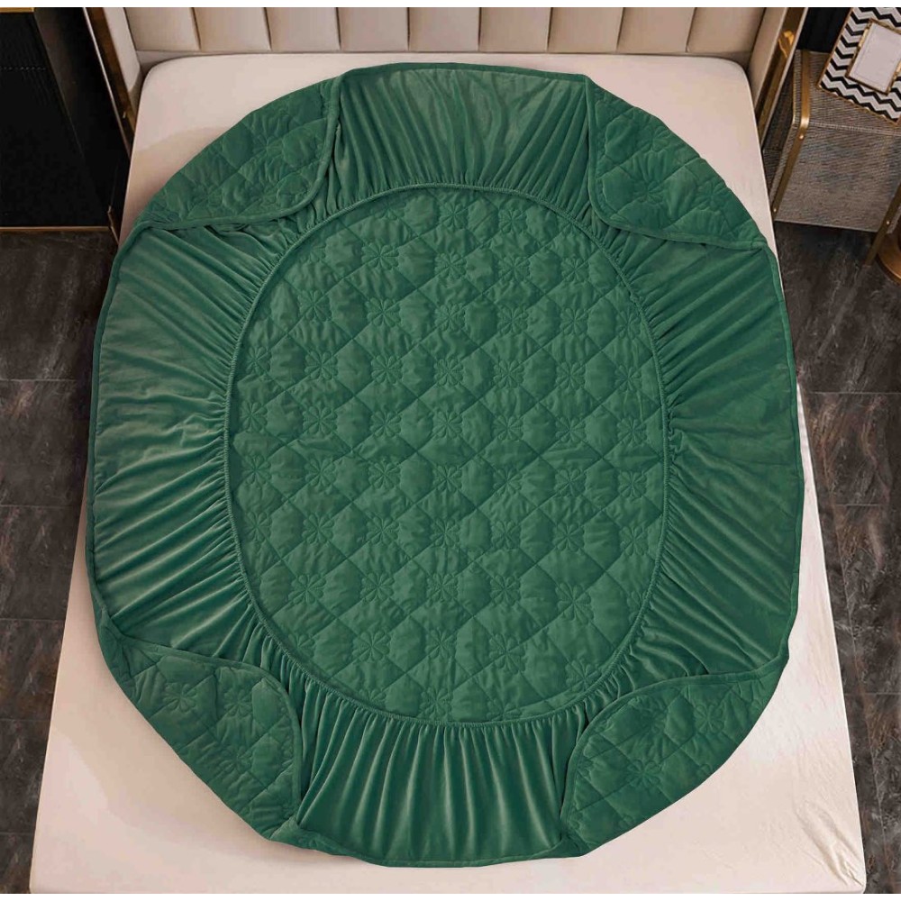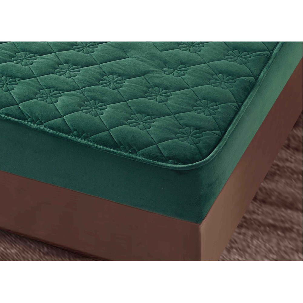 Husã matlasatã tip topper din catifea, 140x200cm + 2 fete de perna 50x70cm, Verde, JOJO Home, cod produs: JOJ-CCL-S-01