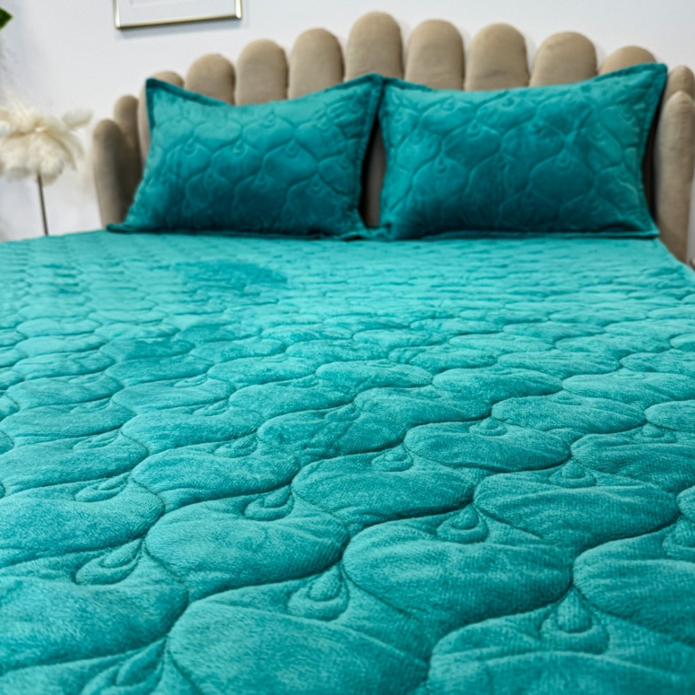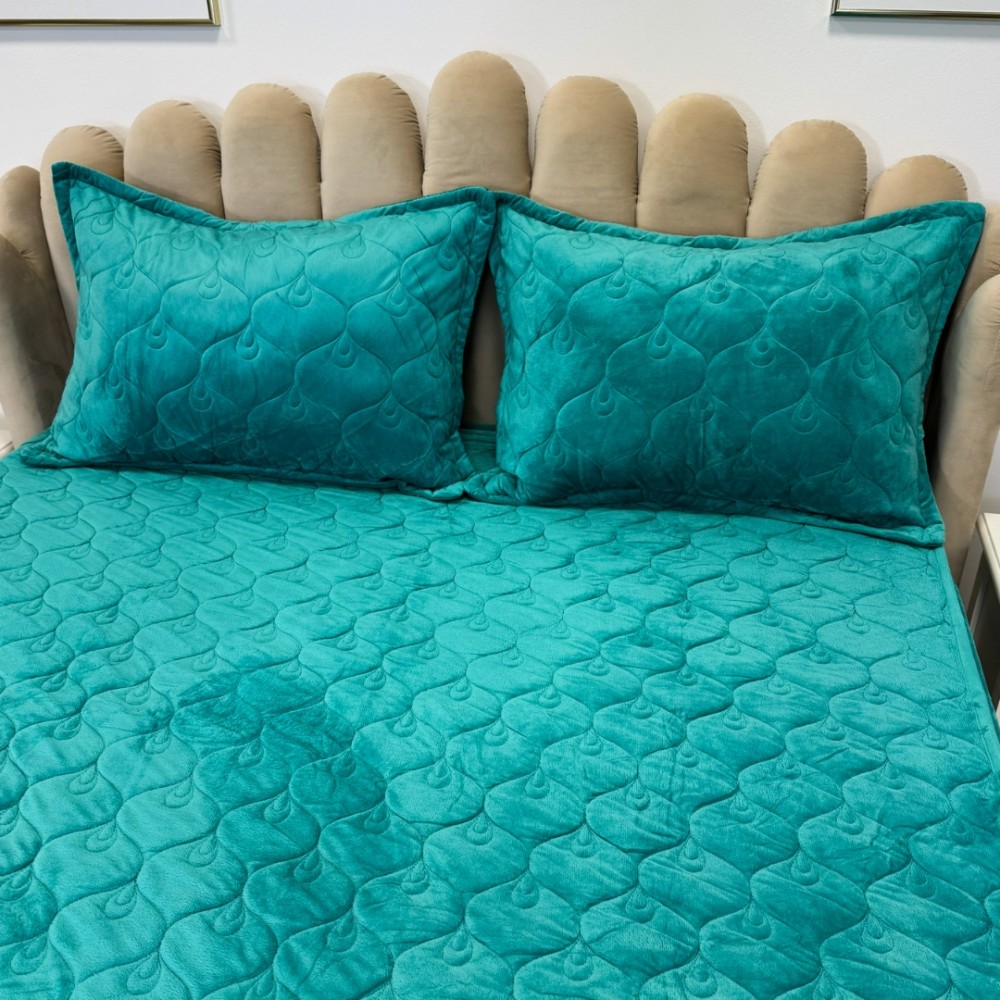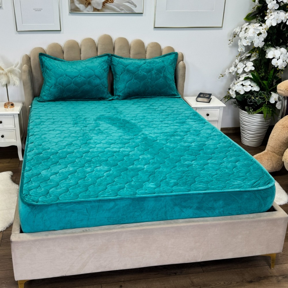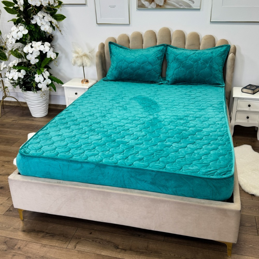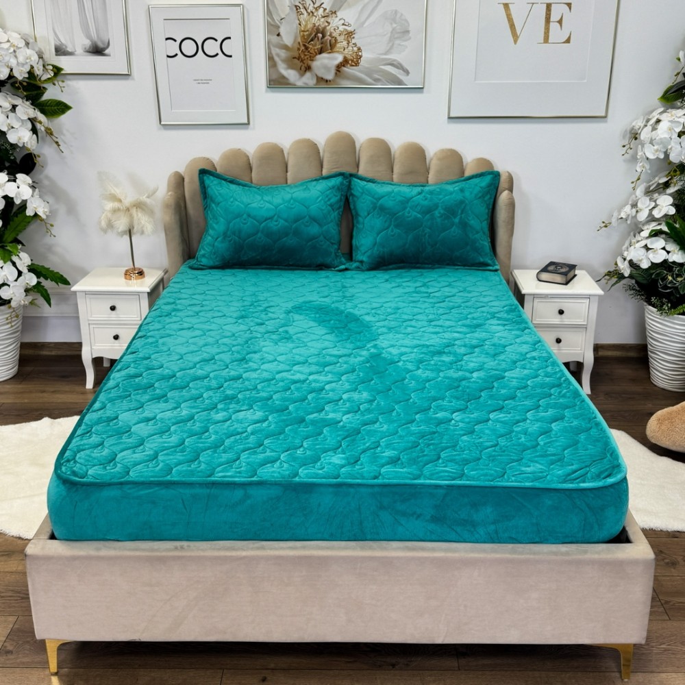 Husã matlasatã tip topper din catifea, 140x200cm + 2 fete de perna 50x70cm, turquoise, Alti producatori, cod produs: YAT6