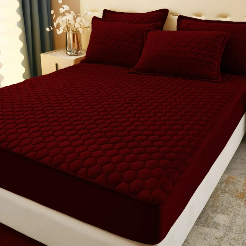 Husã matlasatã tip topper din catifea, 180x200cm + 2 fete de perna 50x70cm, grena, Alti producatori, cod produs: YAT226
