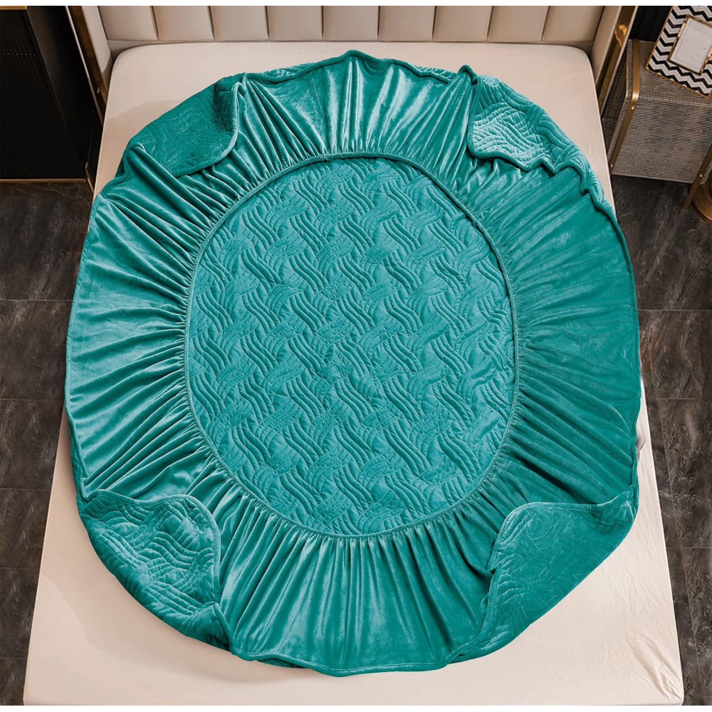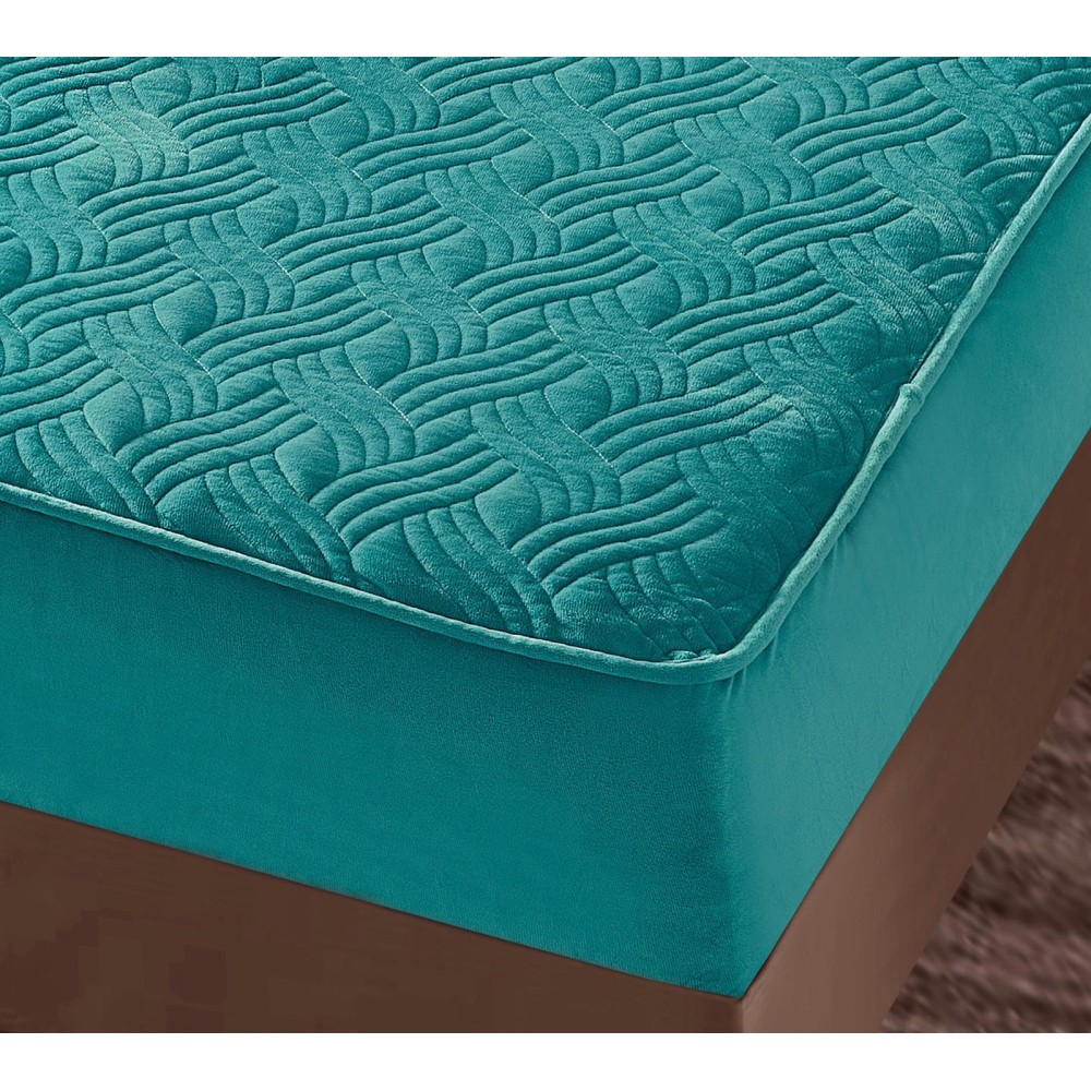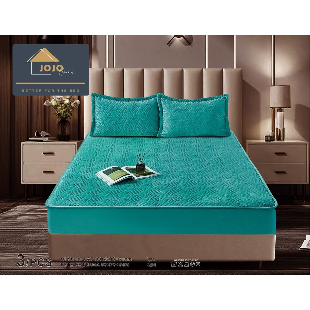 Husã matlasatã tip topper din catifea, 180x200cm + 2 fete de perna 50x70cm, Turquoise, JOJO Home, cod produs: JOJ-CCL-L-10