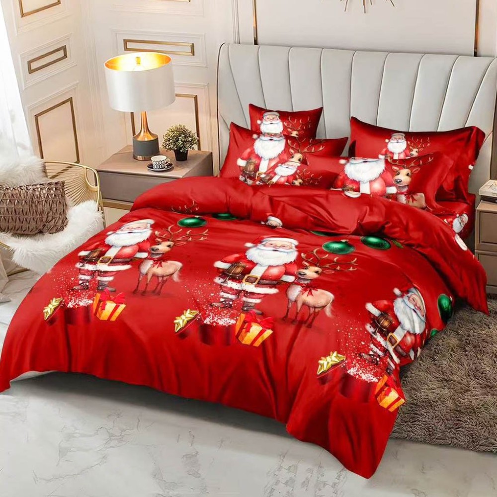 Lenjerie pat dublu, FINET, 6 piese, Mos Craciun, Rosu, cod produs: BCC-FNX-01