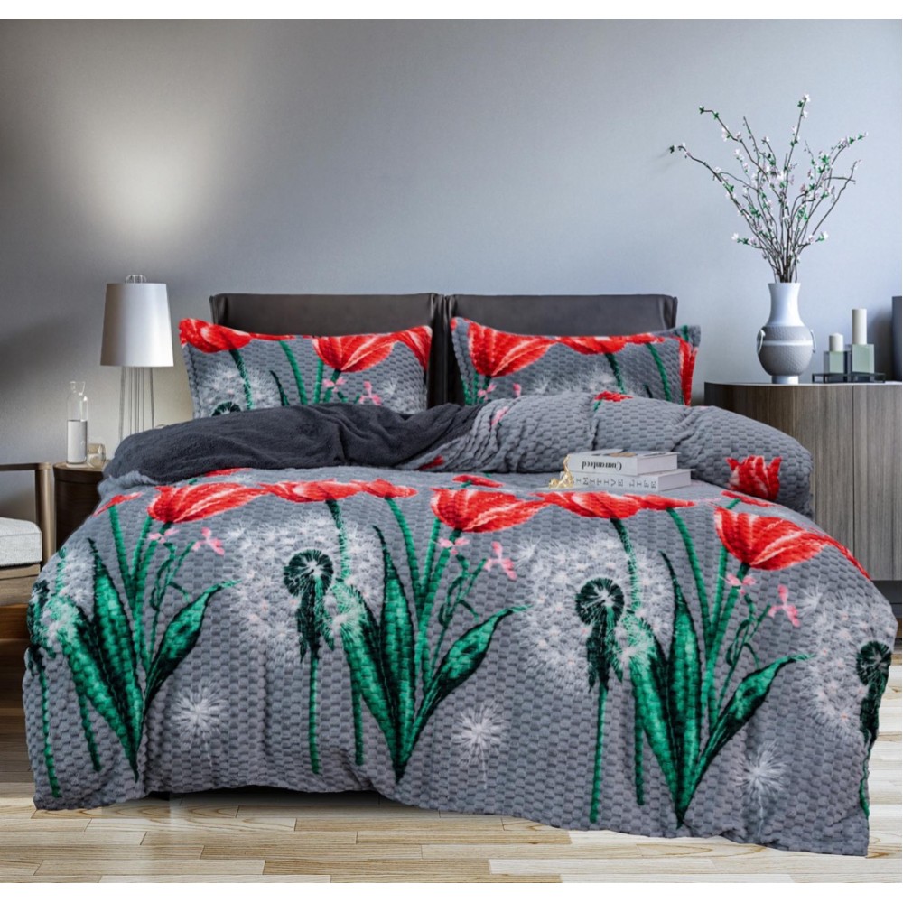 Lenjerie pat dublu, Super Pufoasa COCOLINO Creponata, 4 piese, Gri, Lalele, Casa Creative Elegance Pucioasa, cod produs: BCC-LC-817