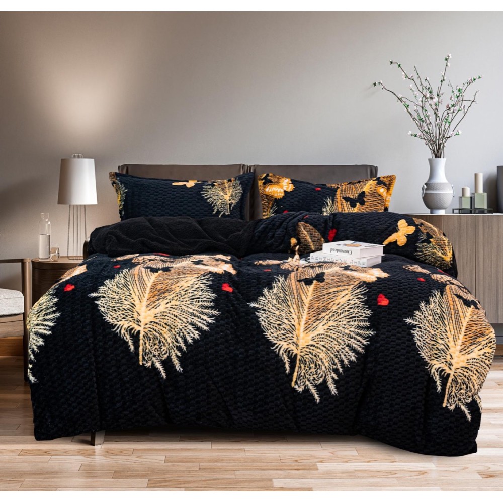 Lenjerie pat dublu, Super Pufoasa COCOLINO Creponata, 4 piese, Negru, Pene, Casa Creative Elegance Pucioasa, cod produs: BCC-LC-820
