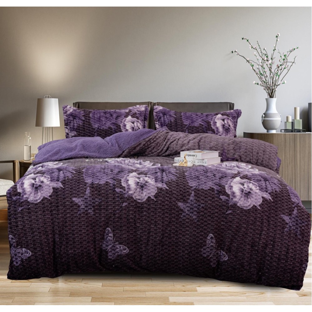 Lenjerie pat dublu, Super Pufoasa COCOLINO Creponata, 4 piese, Mov, Flori, Casa Creative Elegance Pucioasa, cod produs: BCC-LC-822
