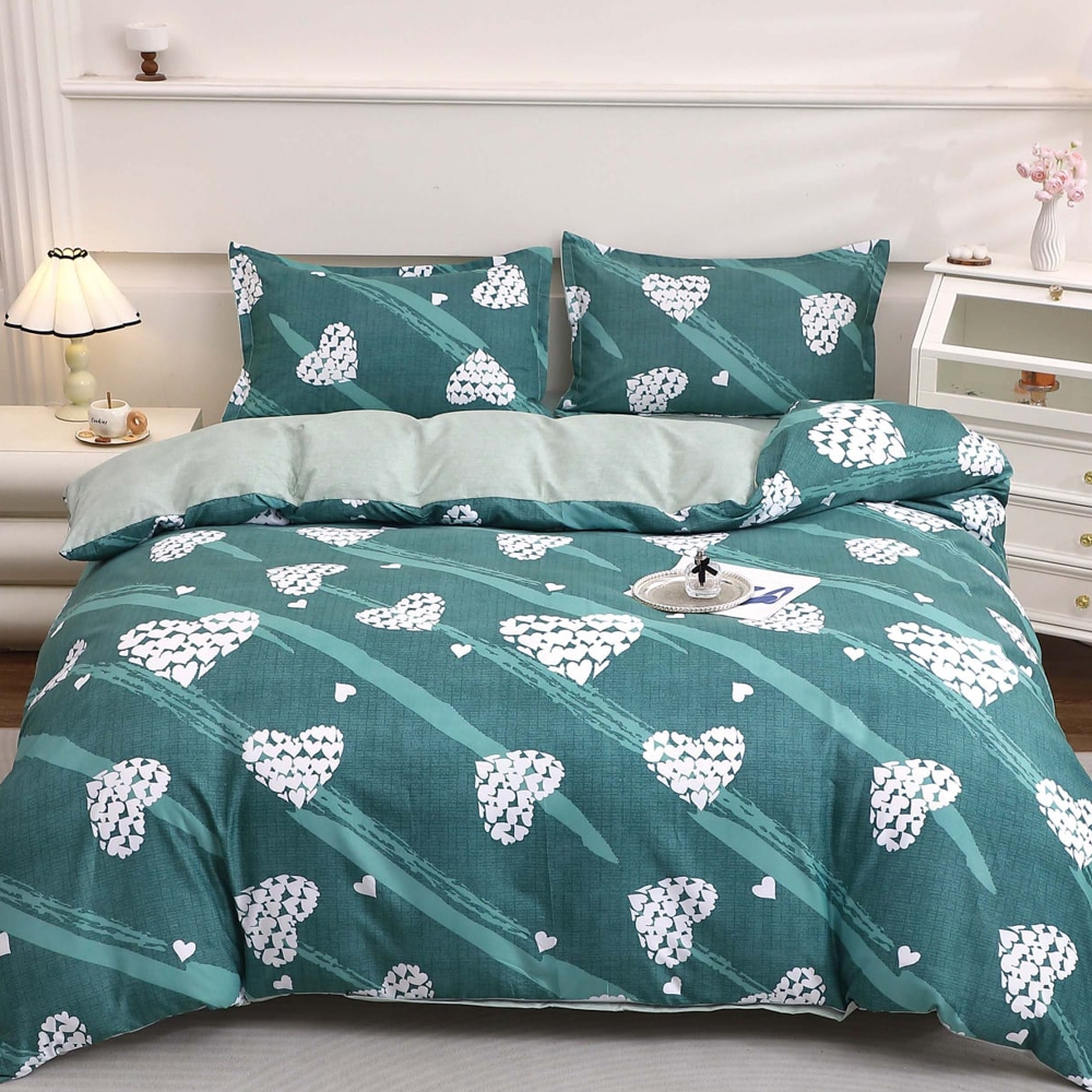 Lenjerie pat dublu cu Elastic (160x200cm si 180x200cm), bumbac satinat, Turcuaz, inimioare, Casa Creative Elegance Pucioasa, cod produs: BCC-SE-34