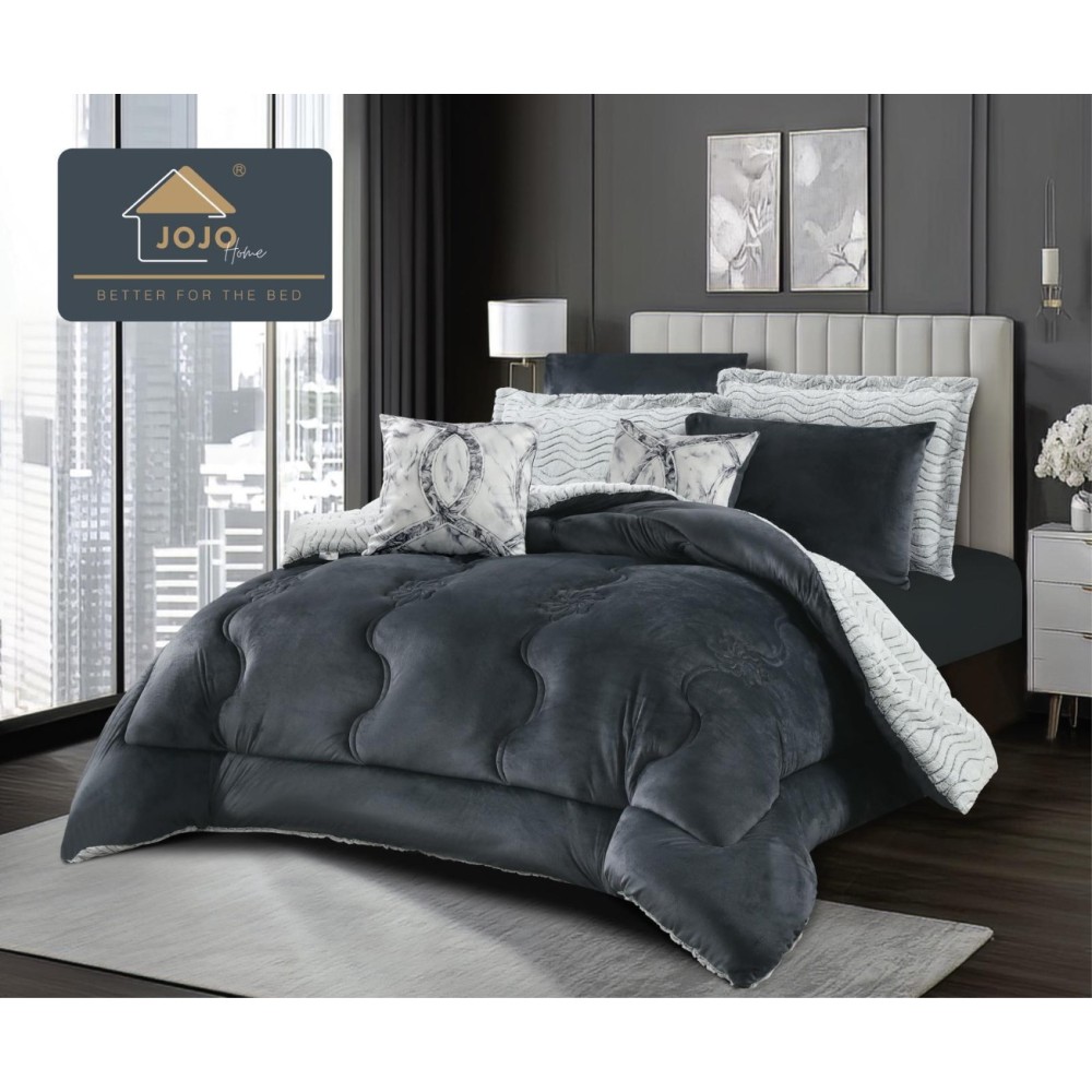 Lenjerie de pat cu Pilota Inclusa, Jojo Home, Cearceaf cu Elastic, 6 Piese, Blană de Iepure Artificială si Catifea, Antracit, cod produs: JOJ-CTM-12