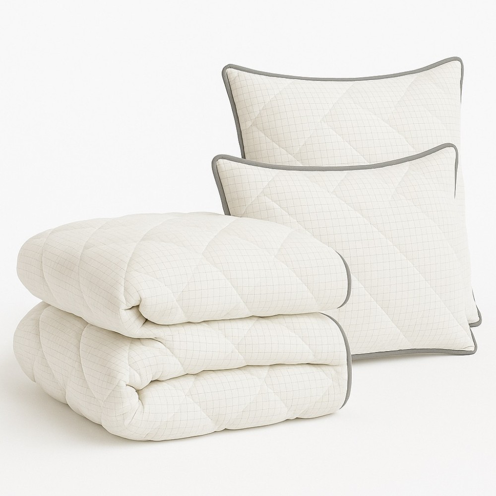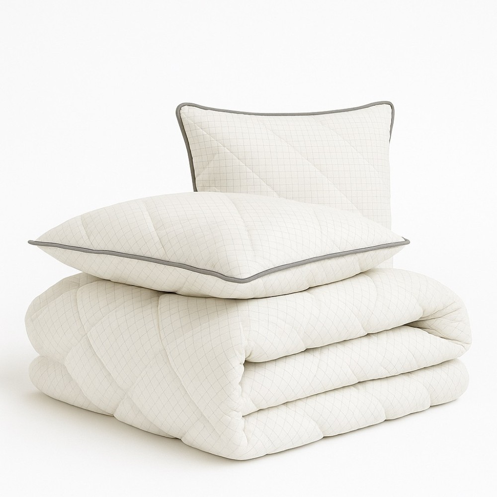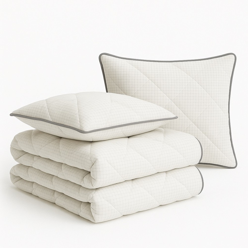 Set pilota 200x220cm + 2 perne 50x70cm, cu puf siliconic si 2 perne 50x70cm matlasate ultrasonic.