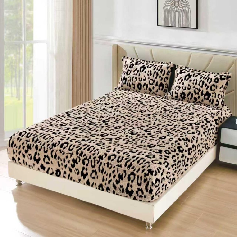Cearsaf cu Elastic, Cocolino Sherpa Touch, 180x200cm si 2 fete de perna 50x70cm, Model Leopard, Bej, Pucioasa Fashion Casa, cod produs: TRP-HLE-03