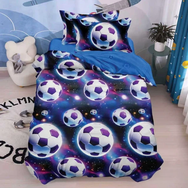 Lenjerie pat 140x200cm, FINET, 4 piese, cu ELASTIC, Albastru, mingii de fotbal, Johny Home Pucioasa, cod produs: SPR-T60-159