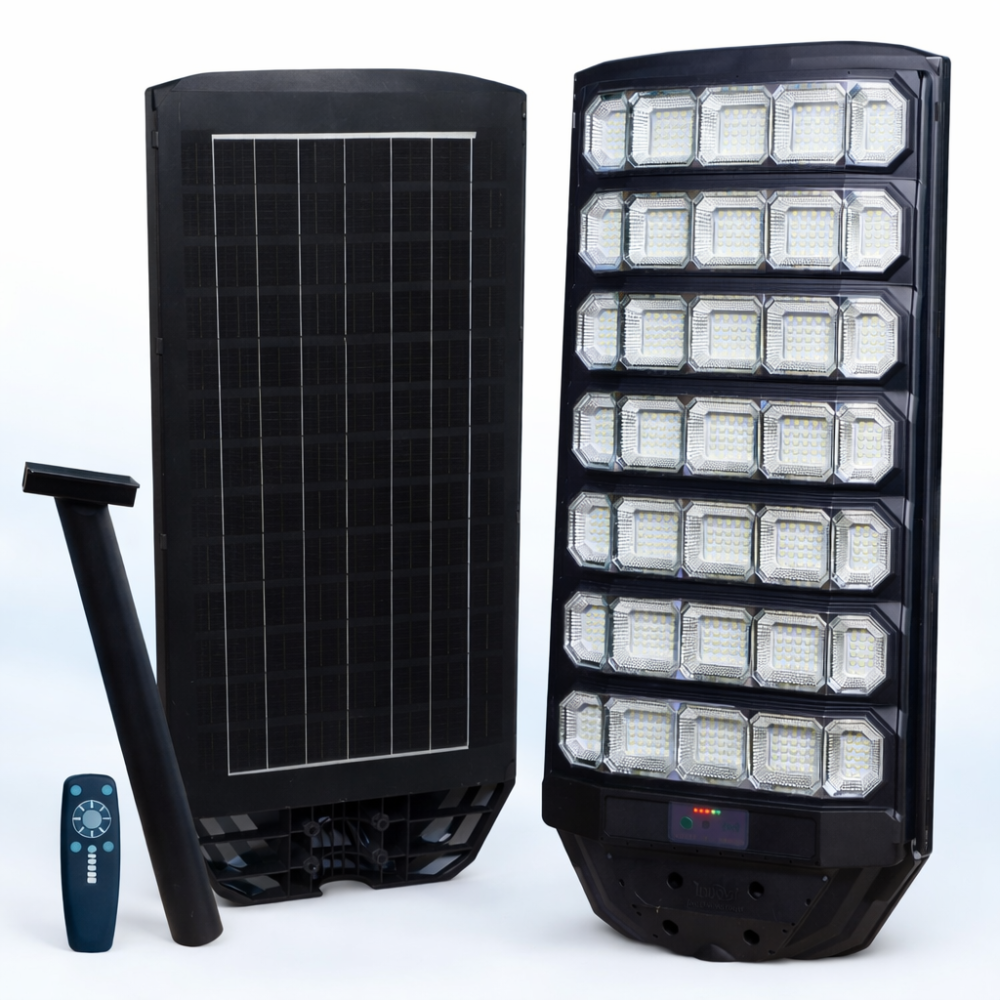 Asigură iluminarea eficientă a spațiilor exterioare cu lampa solară stradală Innova 1600W, ideală pentru parcări, alei, drumuri, curți și grădini fără alimentare electrică. O soluție modernă, cu consum zero din rețea, care oferă lumină puternică pe tot parcursul nopții, indiferent de sezon.