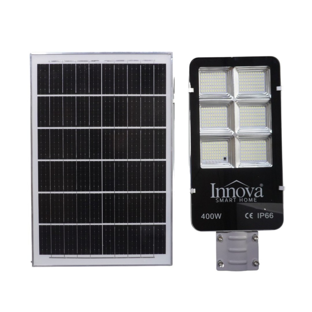 Iluminare verde, automată și fără costuri suplimentare. Concepută să funcționeze autonom, lampa solară INNOVA 400W îți oferă siguranță, vizibilitate și eleganță, folosind energie 100% solară.