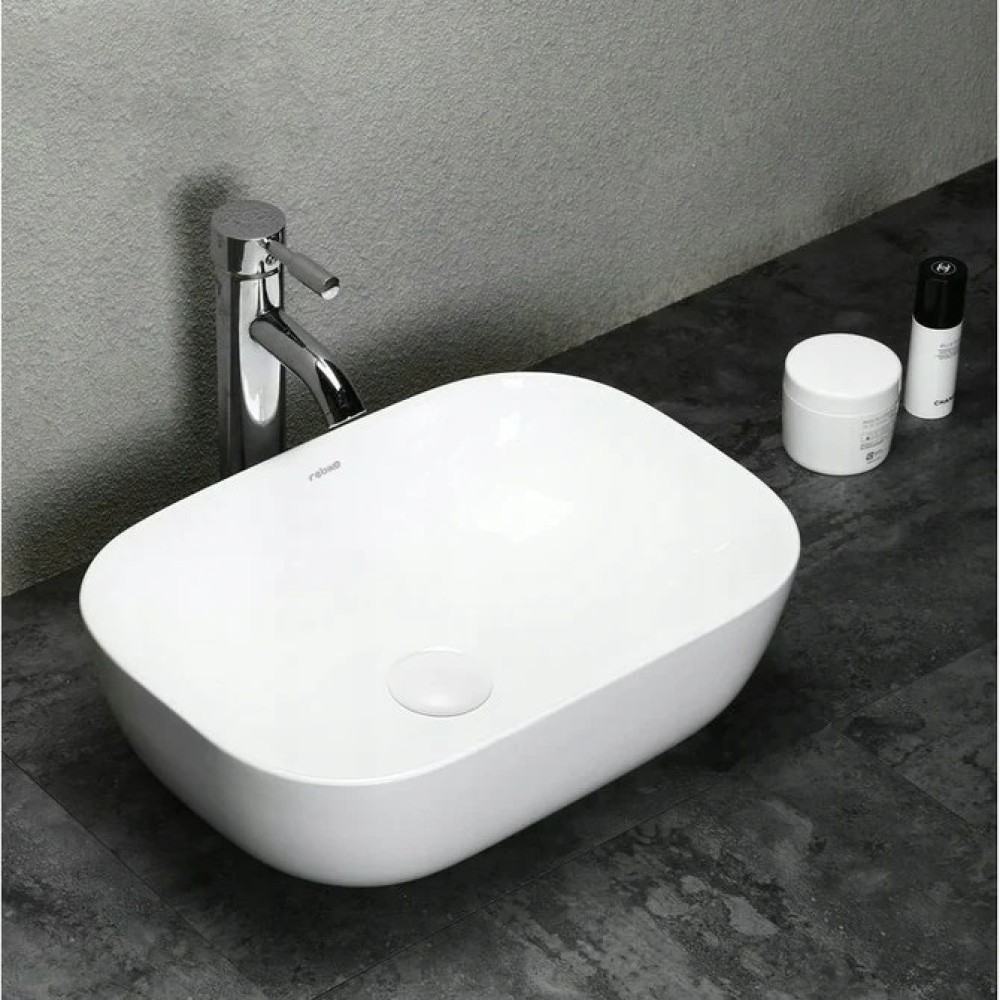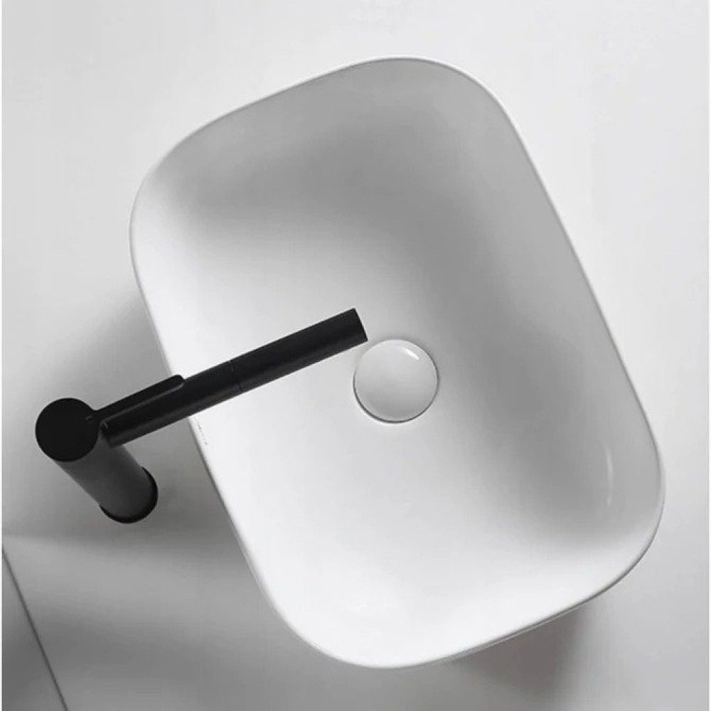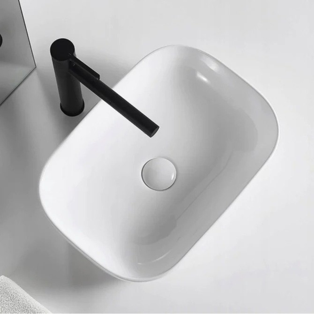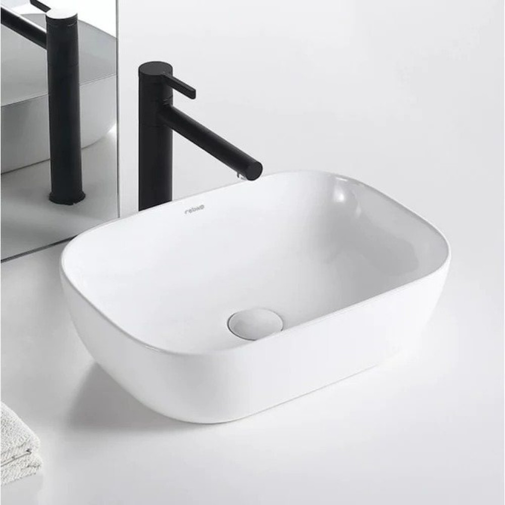 Cu un design dreptunghiular și dimensiuni compacte de 46 x 33 x 14 cm, acest lavoar este perfect pentru montaj pe blat, oferind un aspect minimalist și sofisticat.