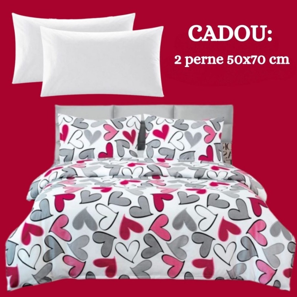 • Perne cadou incluse: Setul vine însoțit de două perne cadou de 50x70 cm, cu umplutură din vatelină siliconică, ideale pentru un somn odihnitor și un suport delicat al capului și gâtului.