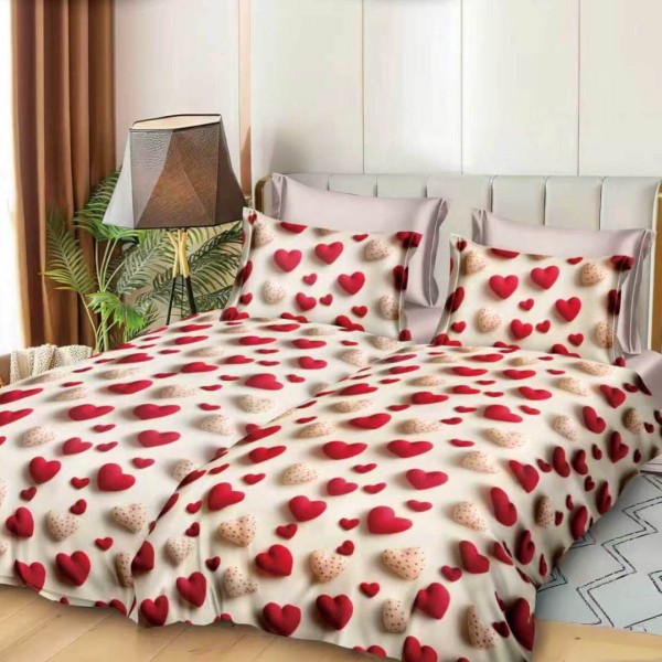 Lenjerie de pat cu 2 cearsafuri pt. pilota, 7 piese, Bumbac Satinat Superior,, Crem, inimioare, Johny Home Pucioasa, cod produs: SPR-K-40