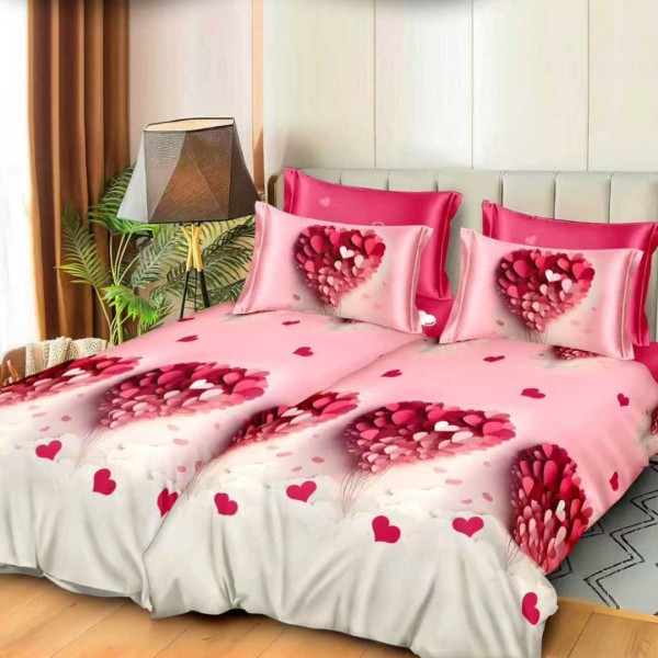 Lenjerie de pat cu 2 cearsafuri pt. pilota, 7 piese, Bumbac Satinat Superior, Alb, Roz, inimioare, Johny Home Pucioasa, cod produs: SPR-K-58